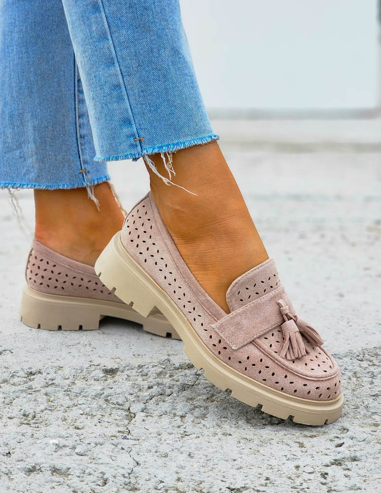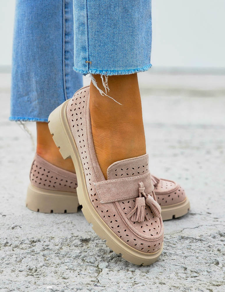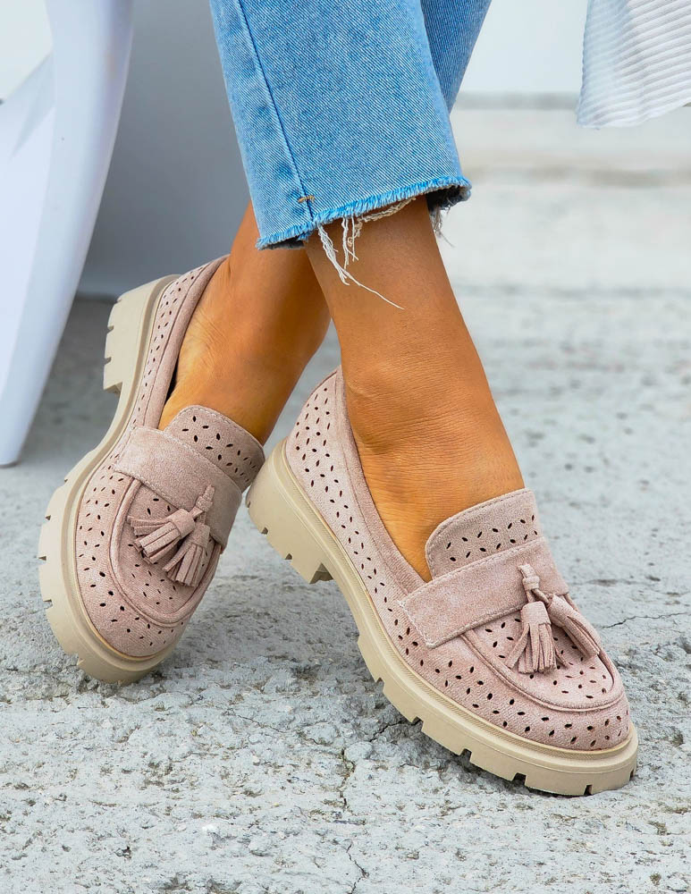 Ażurowe Zamszowe Beżowe Mokasyny OhShoes