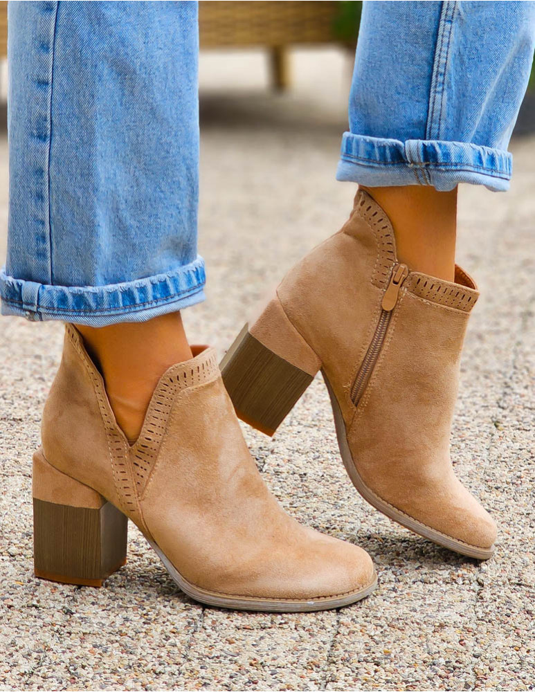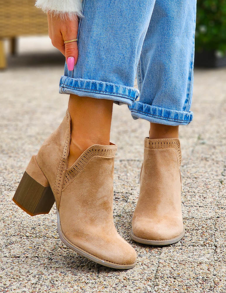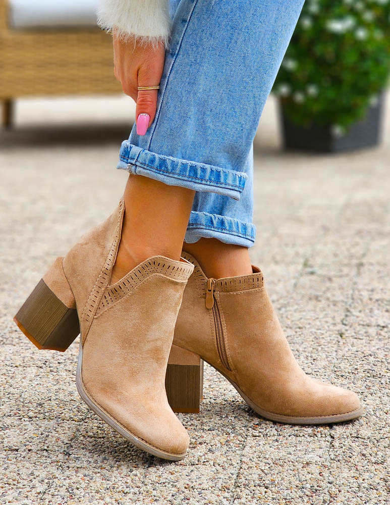 Beżowe Klasyczne Zamszowe Botki Na Obcasie Daisy