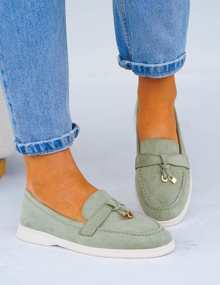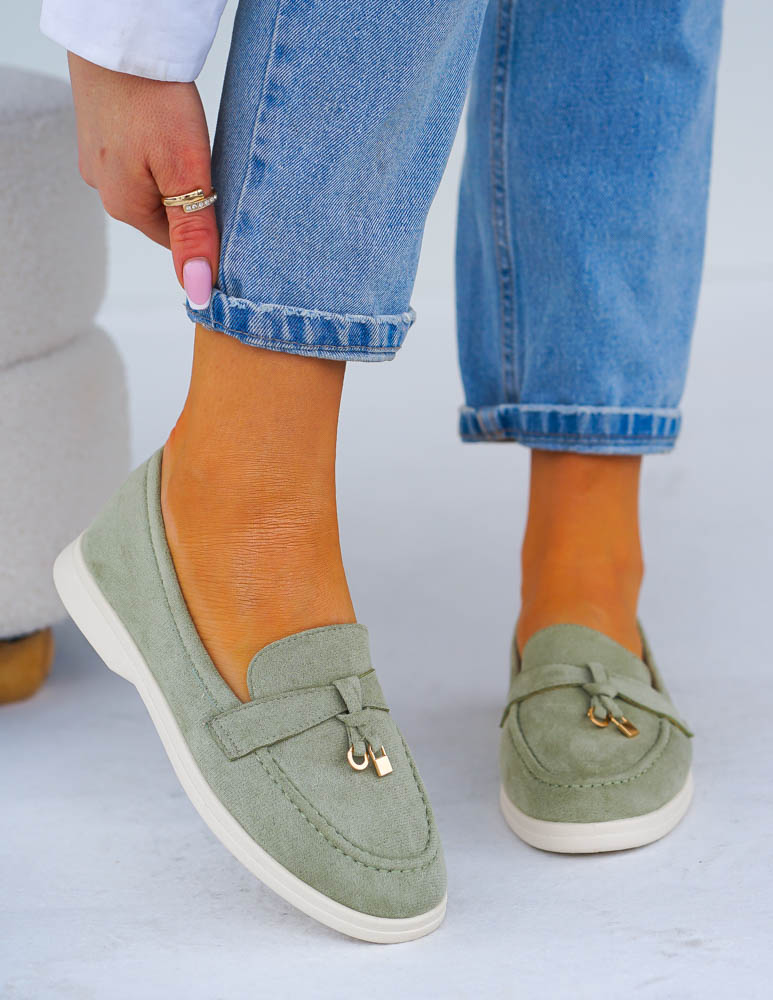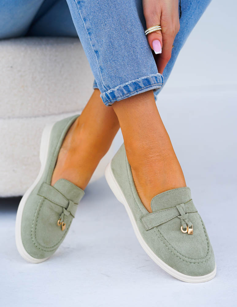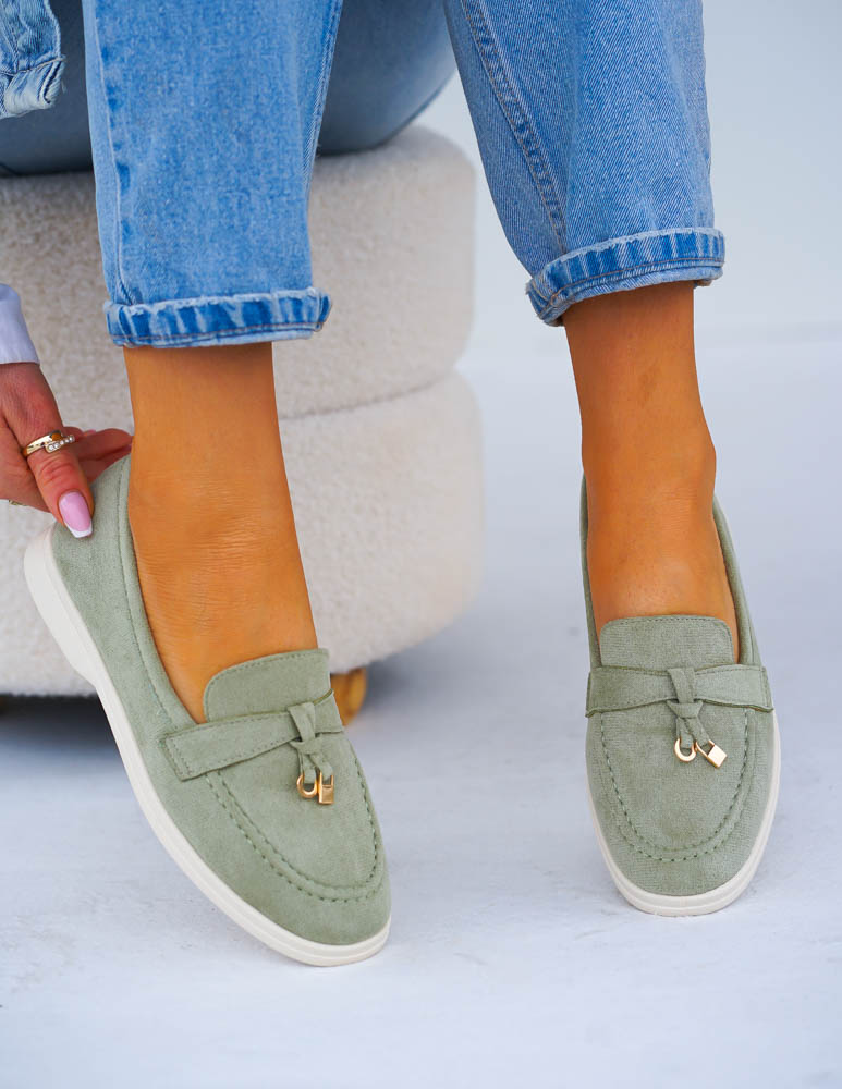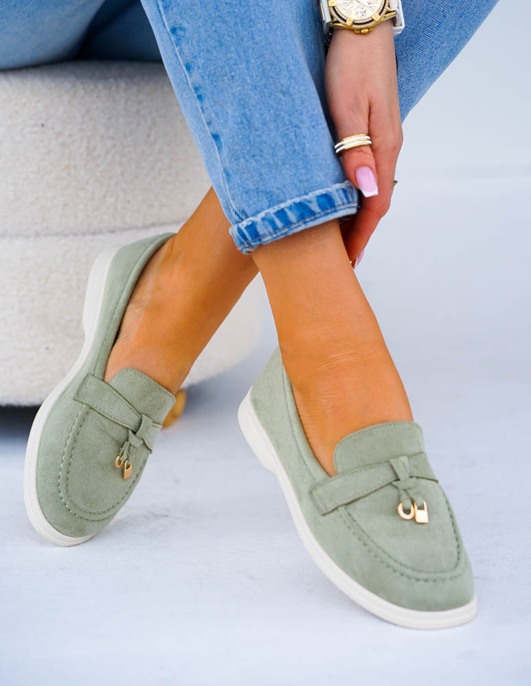 Baleriny Mokasyny Na Płaskiej Podeszwie Hariet Pistacja