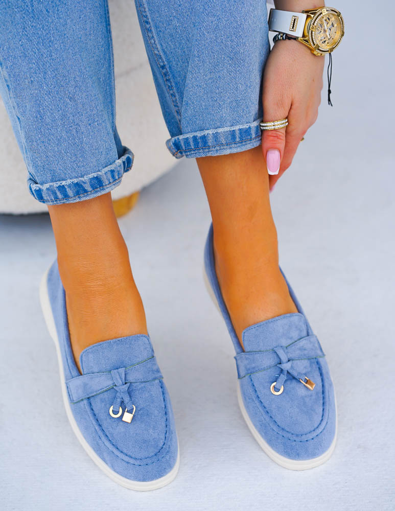 Baleriny Mokasyny Na Płaskiej Podeszwie Hariet Błękitne
