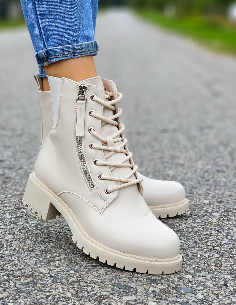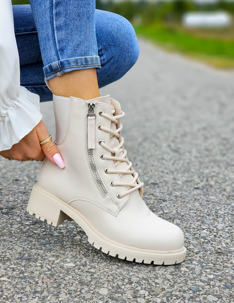 Krótkie Beżowe Botki Z Gumami Na Platformie Sonic