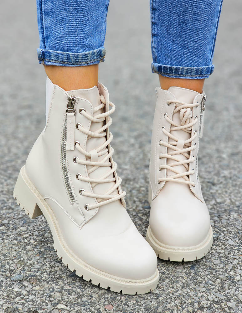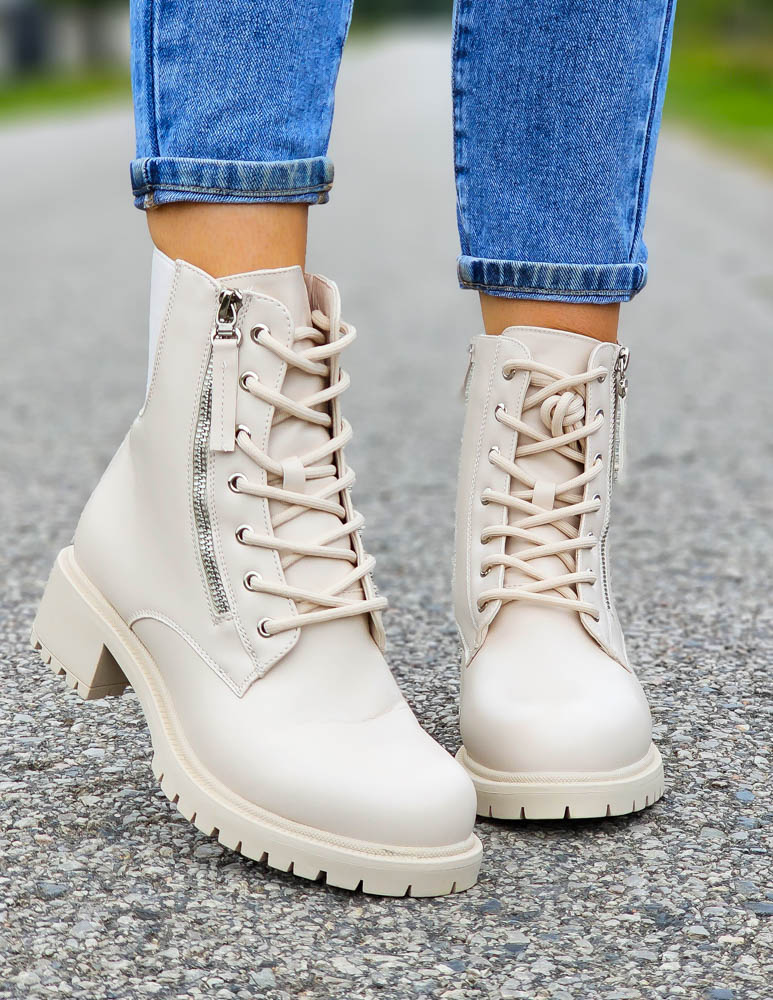 ❤NAJNOWSZA KOLEKCJA !!!❤EFEKTOWNE BEŻOWE BOTKI NA GRUBEJ PODESZWIE❤BUTY POSIADAJĄ GUMOWE WSTAWKI PO ..