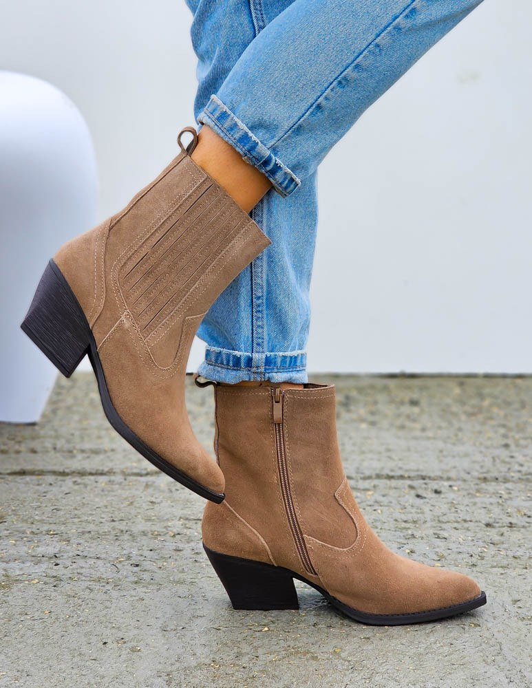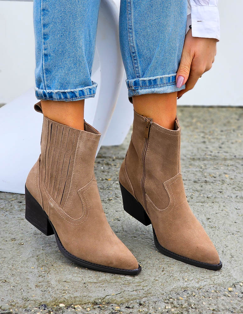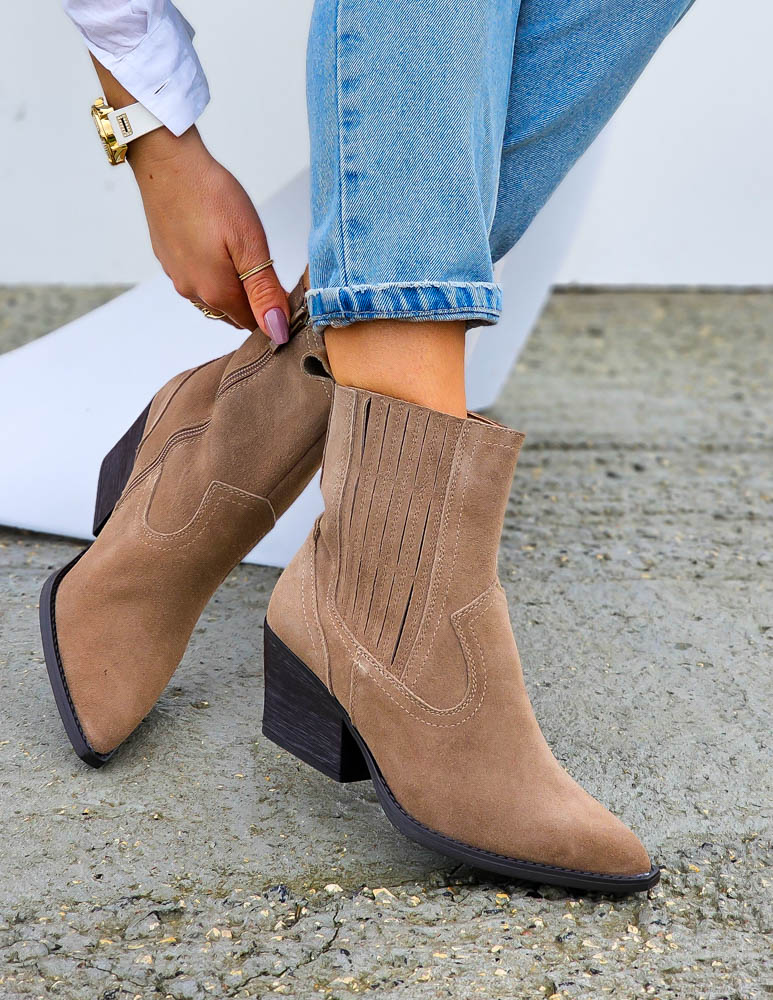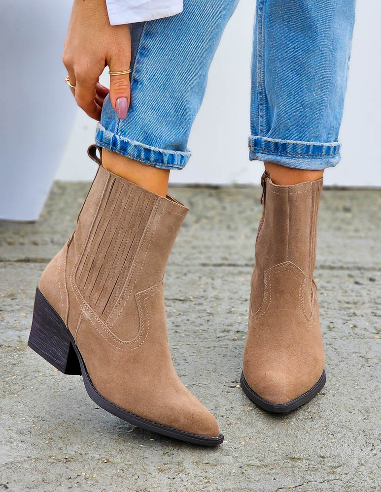 Beżowe Klasyczne Zamszowe Botki Na Obcasie Daisy