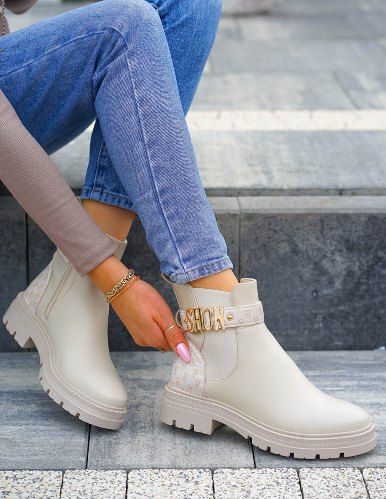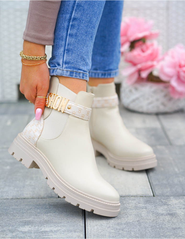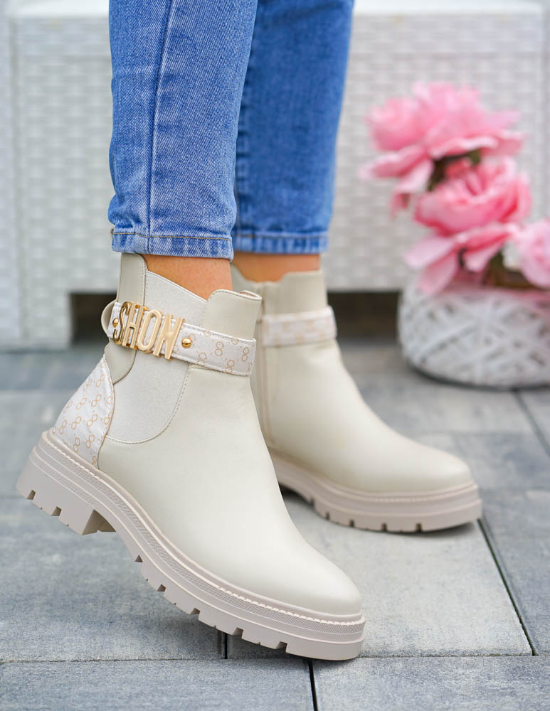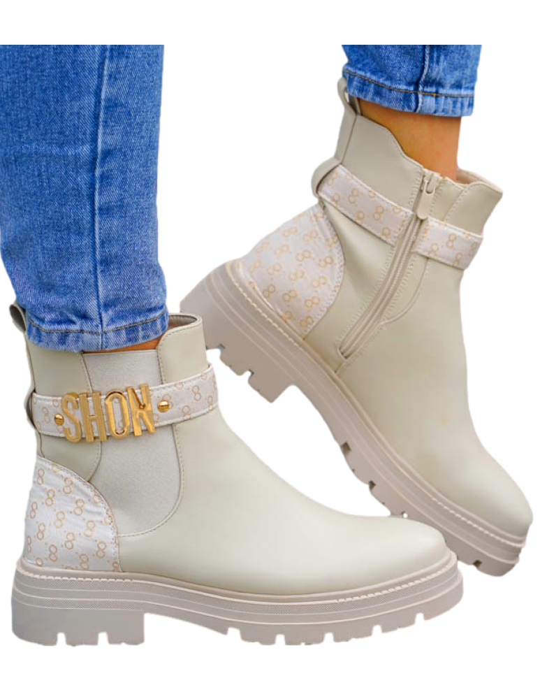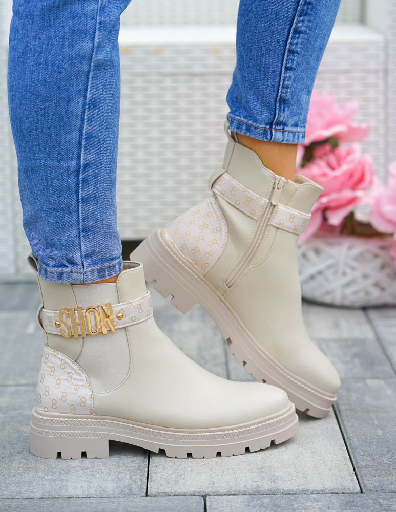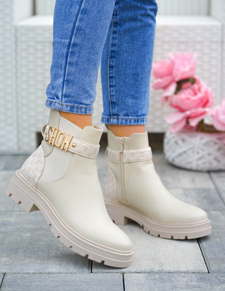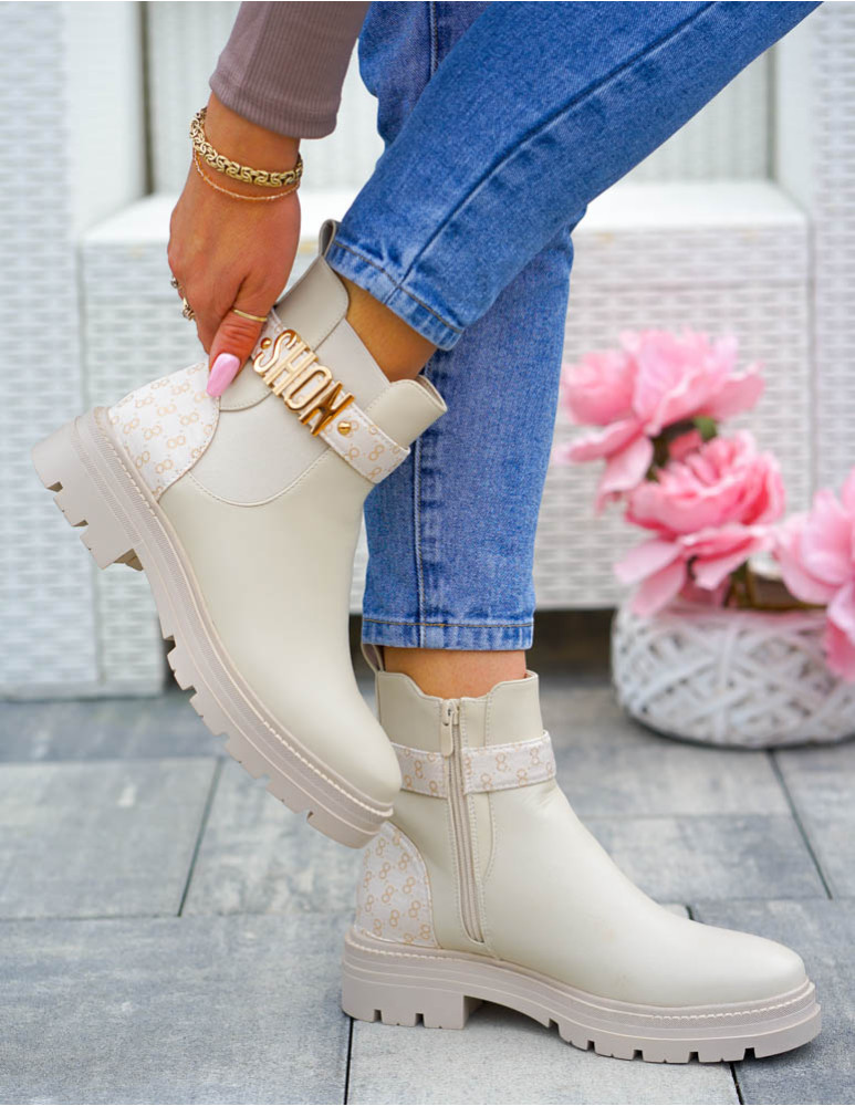 - Kod produktu: Beżowe Botki Workery Na Grubej Podeszwie Shon