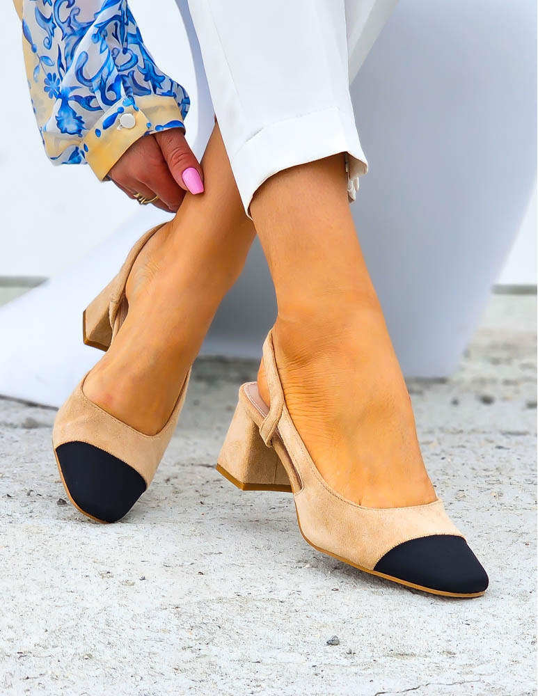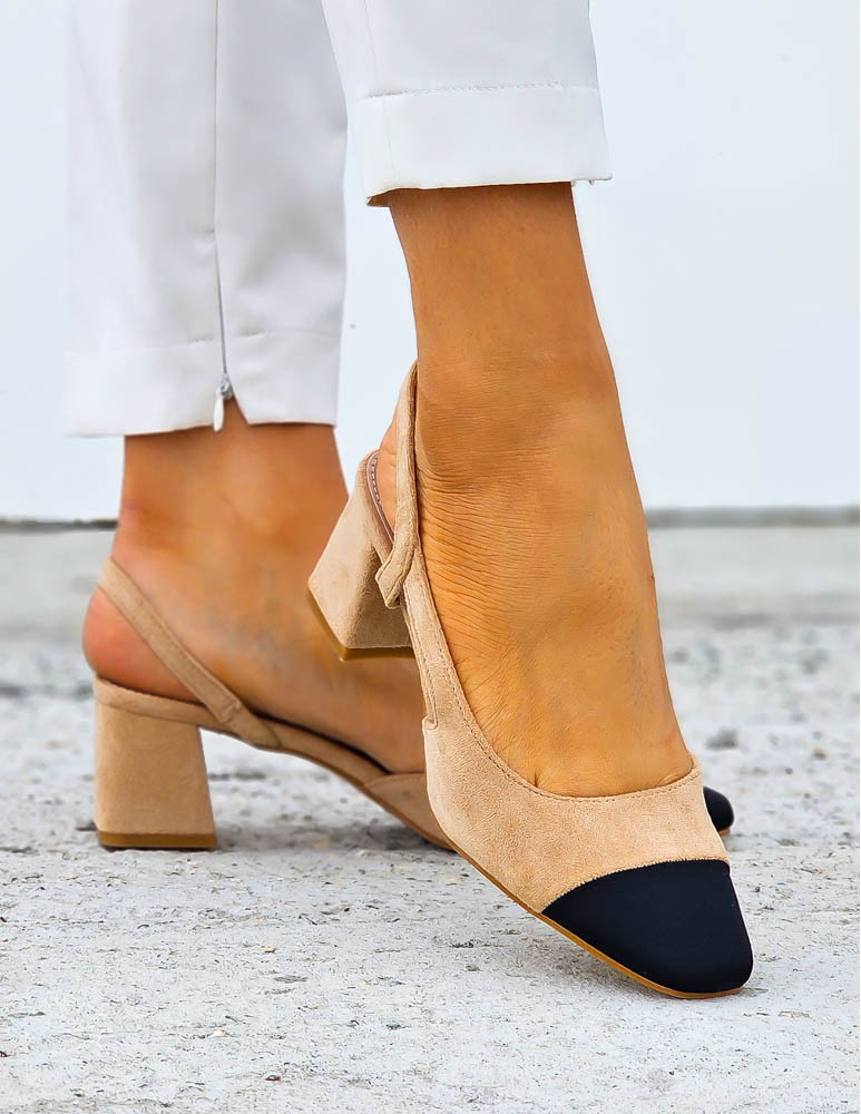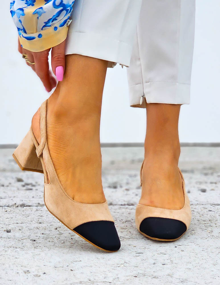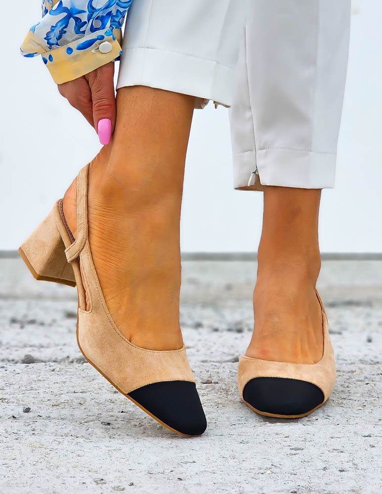 Beżowe Czółenka z Zakrytym Noskiem Na Klocku