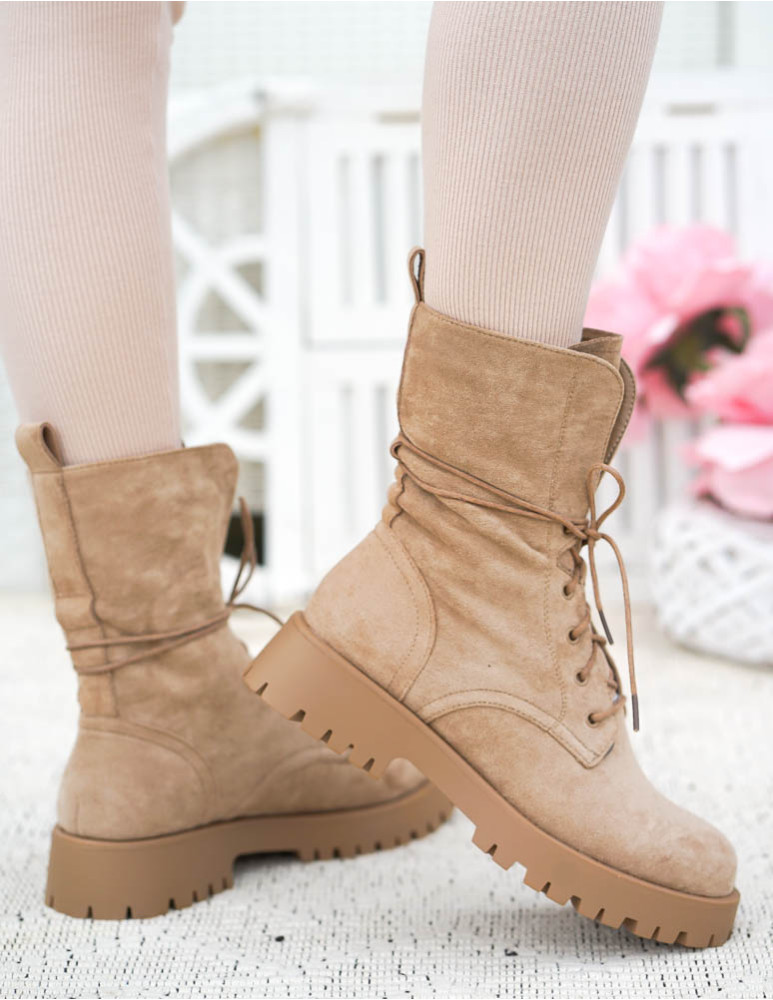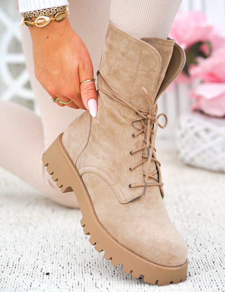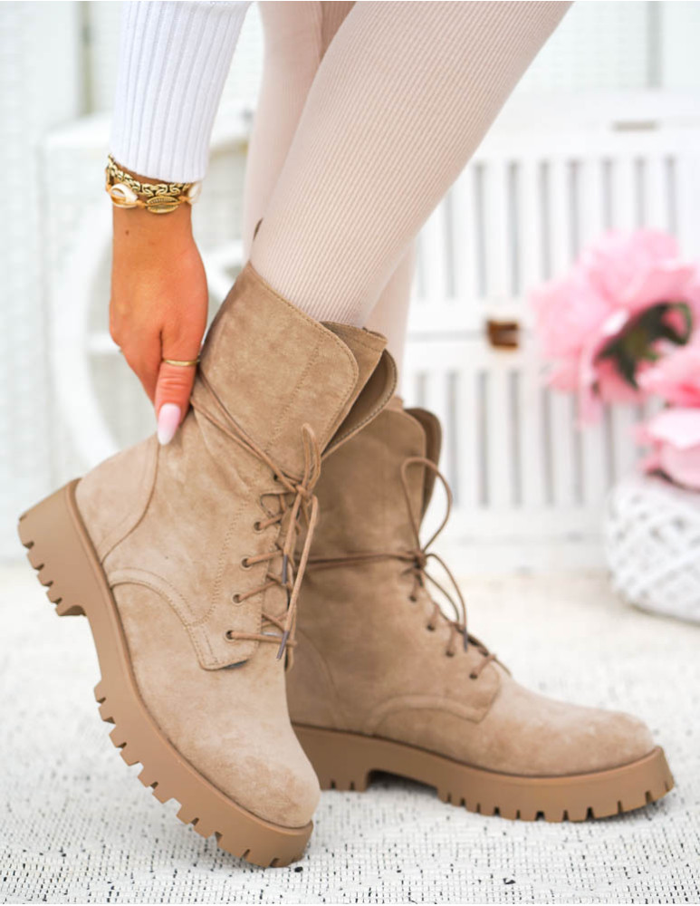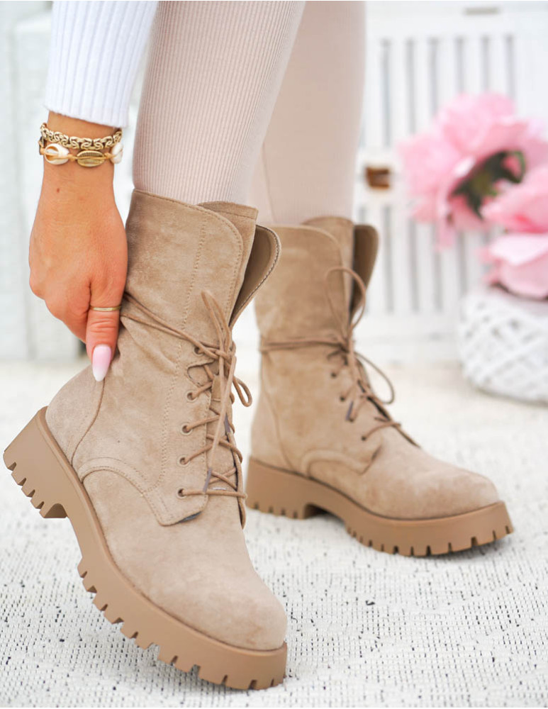 PRZEPIĘKNE ZAMSZOWE BOTKI, DOSTĘPNE W BEŻOWYM KOLORZEWYKONANE Z WYSOKIEJ JAKOŚCI MIĘKKIEJ ECO SKÓRY ..