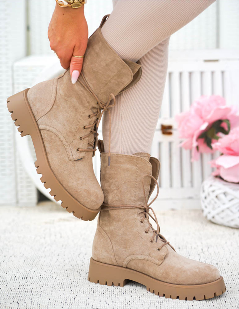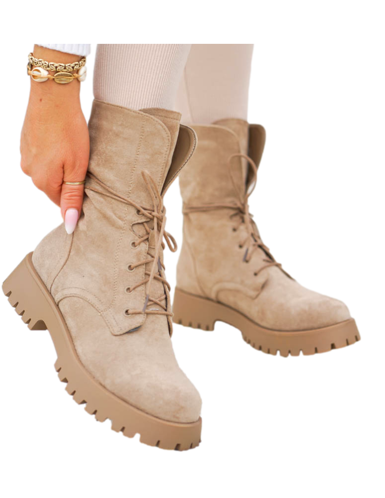 - Kod produktu: Beżowe Glany Botki Zamszowe Sznurowane Khaki