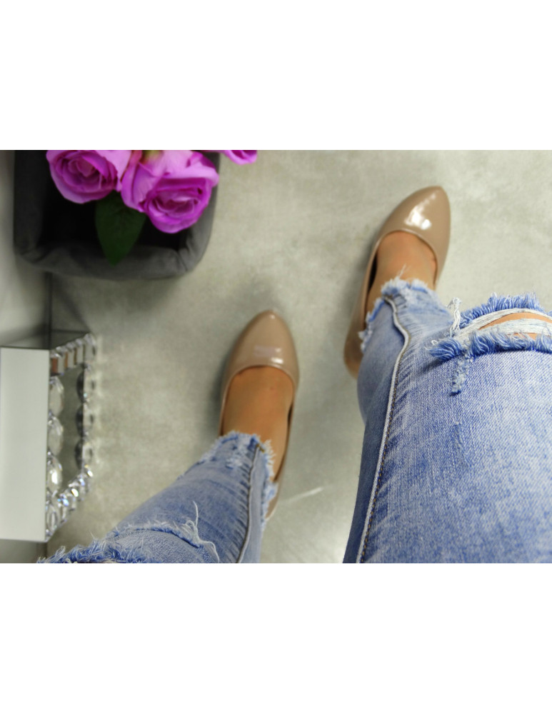 BEŻOWE KLASYCZNE SZPILKI CZÓŁENKA lakierowane