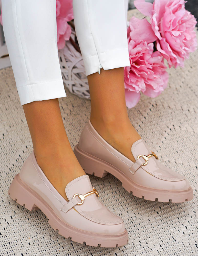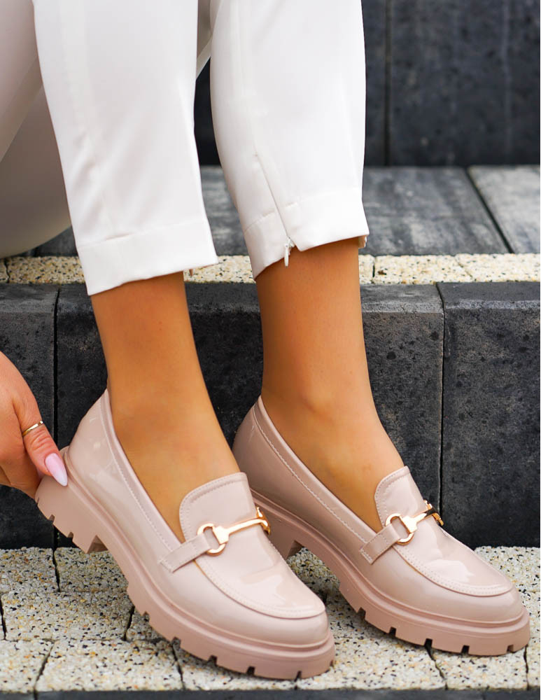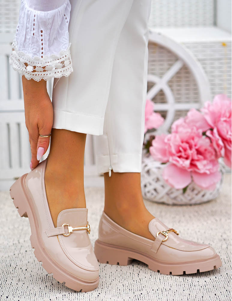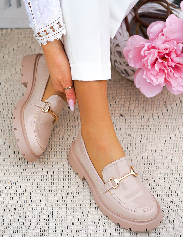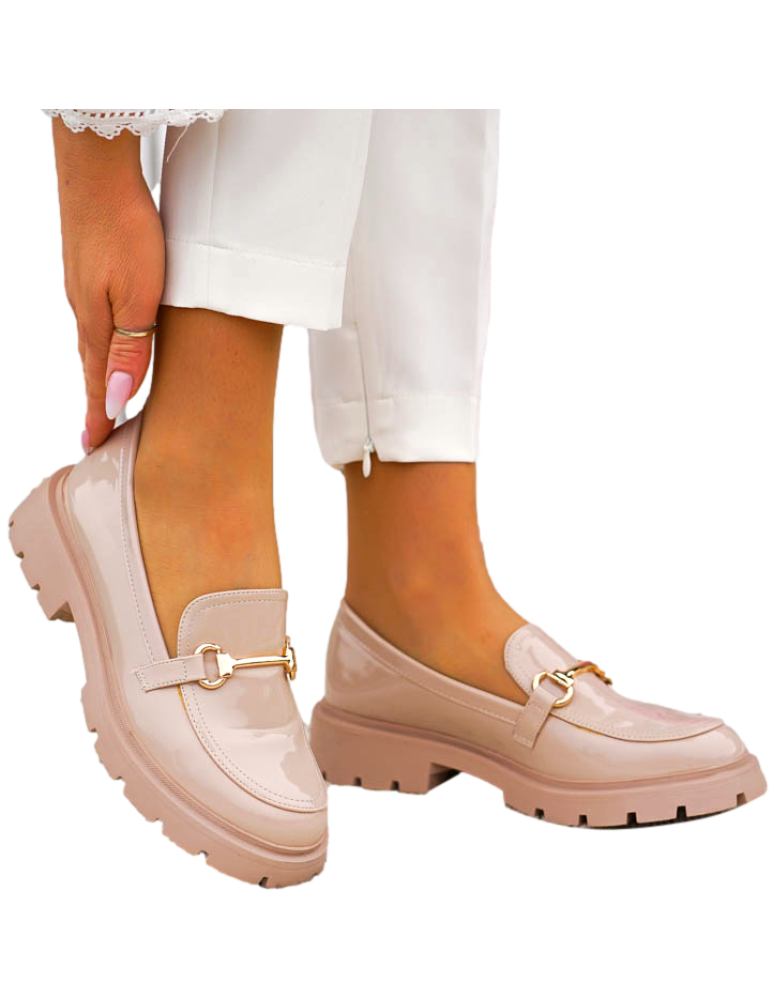 - Kod produktu: Beżowe Lakierowane Mokasyny Na Grubej Podeszwie