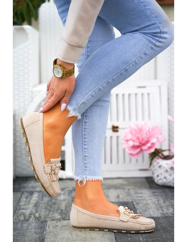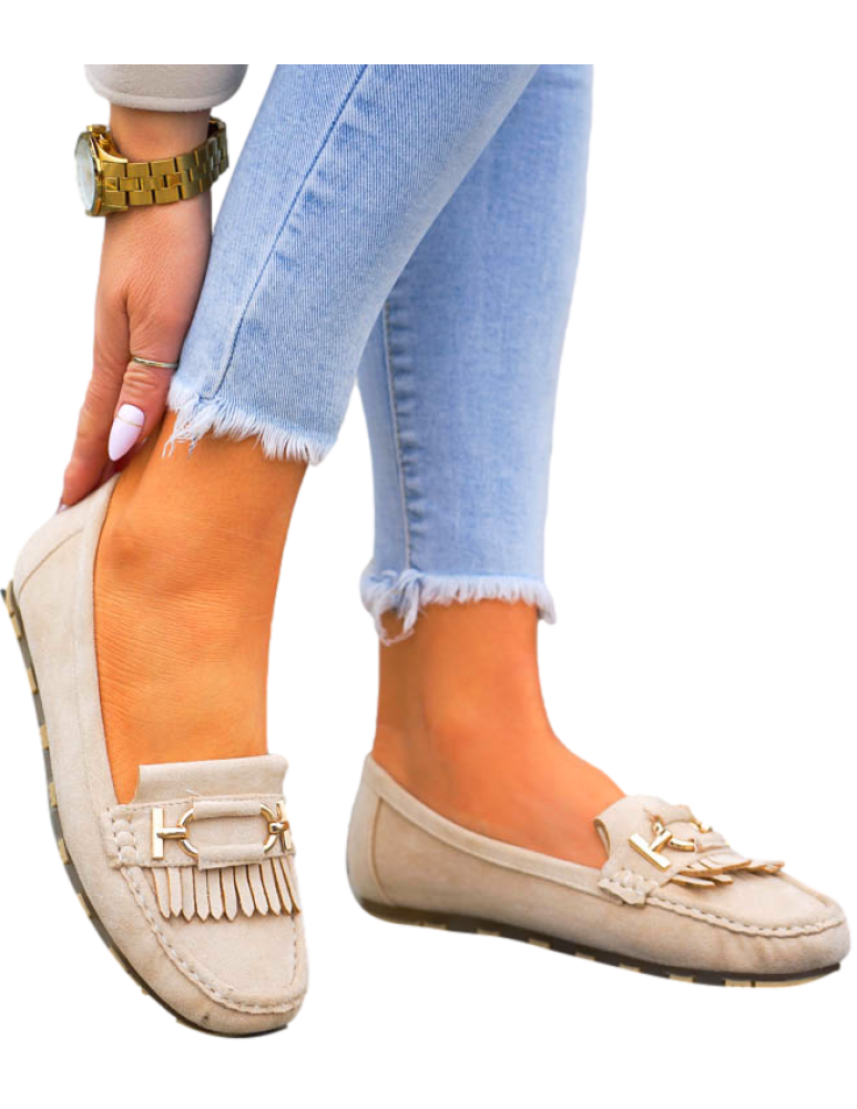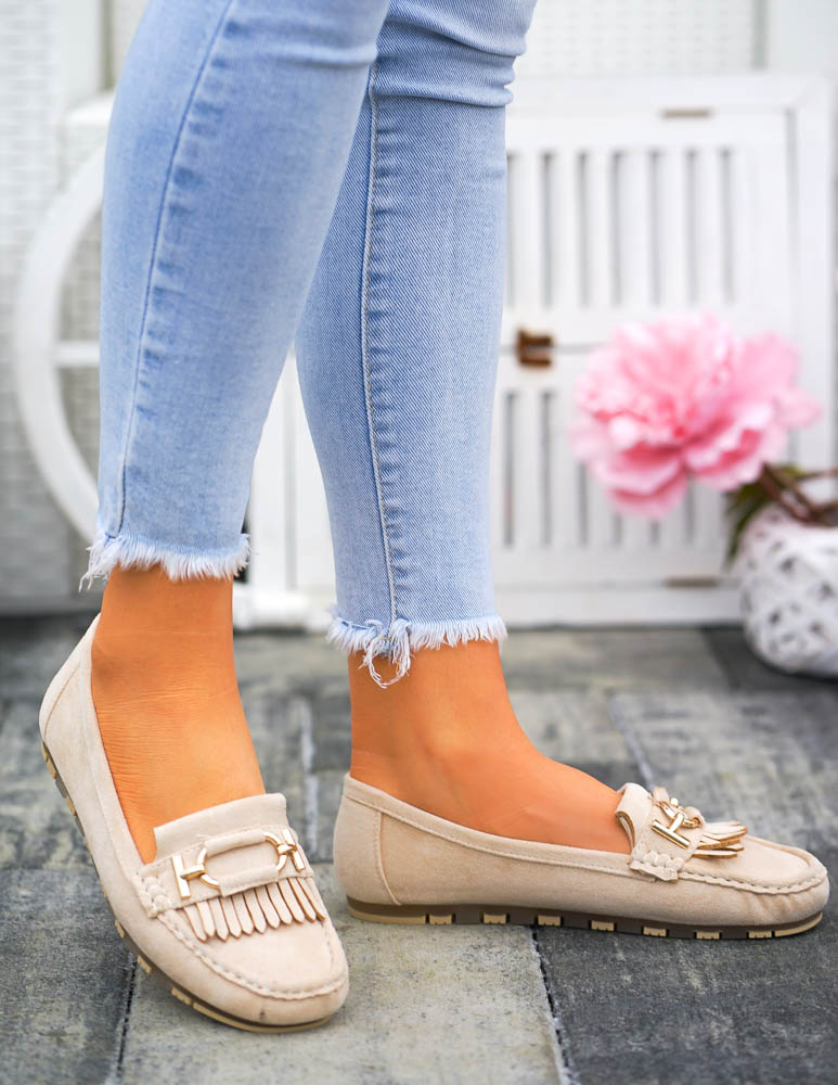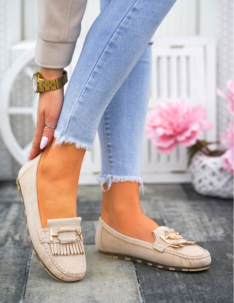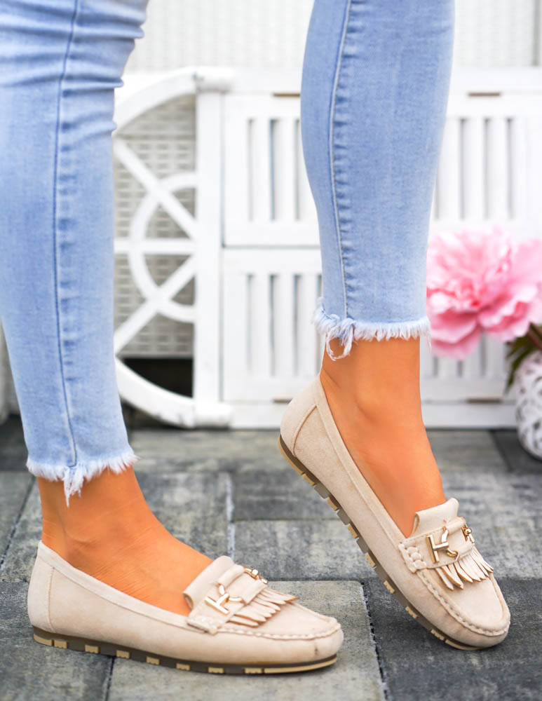 ❤Najnowsza kolekcja❤Mokasyny w jasnym beżowym kolorze❤Modne mokasyny damskie❤Mokasyny z eleganckim z..