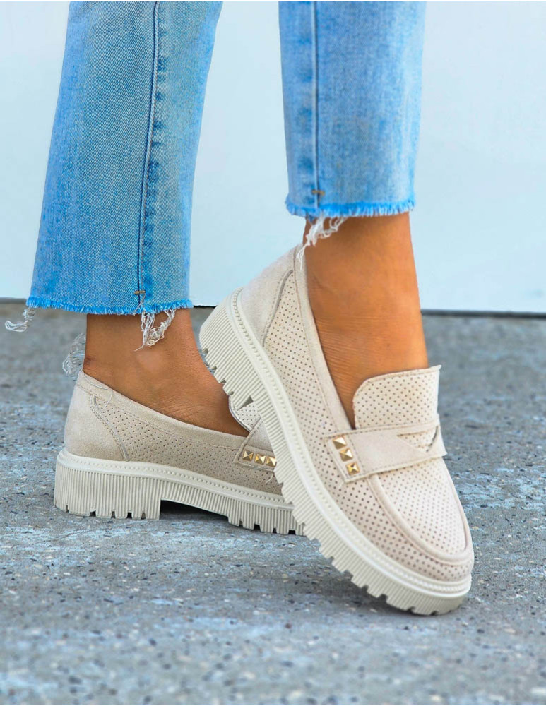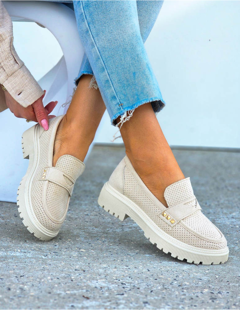 Beżowe Zamszowe Mokasyny Na Grubej Podeszwie Suzzy