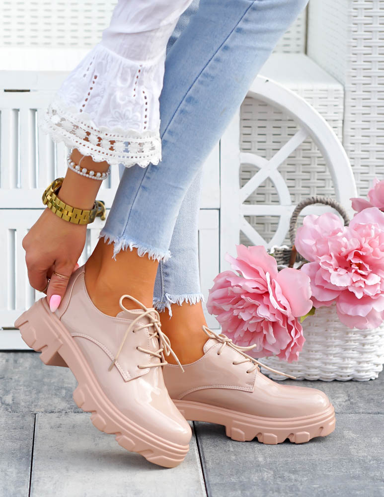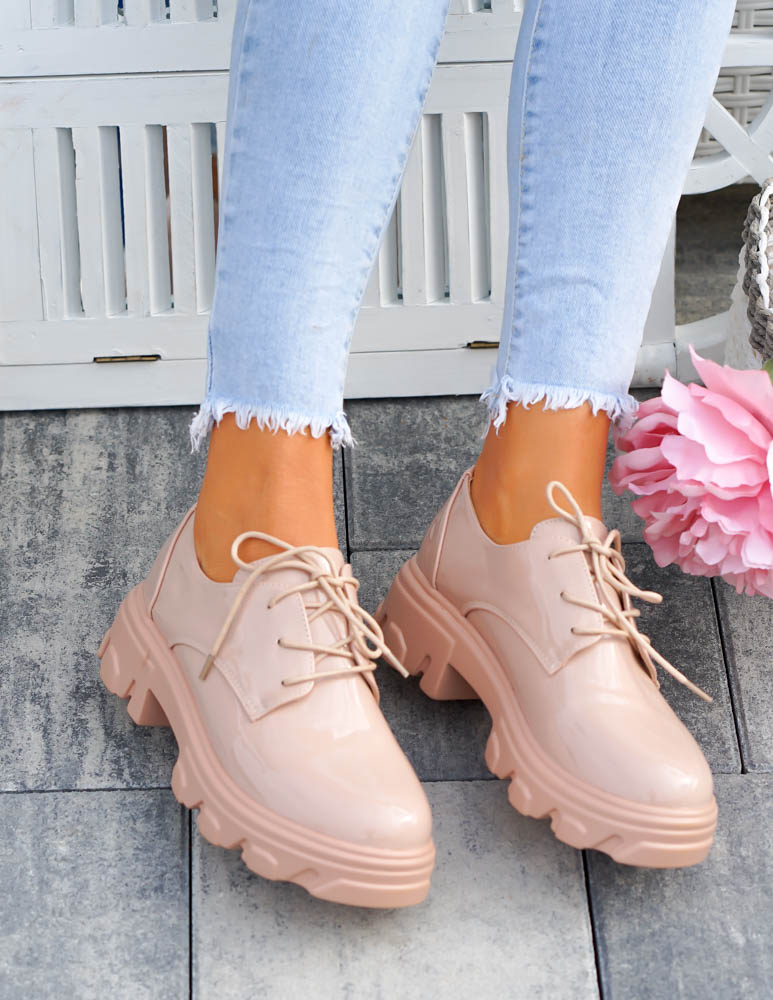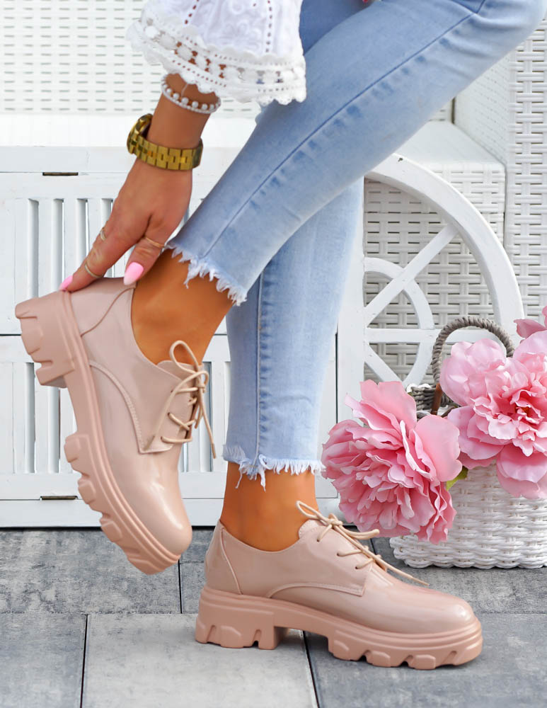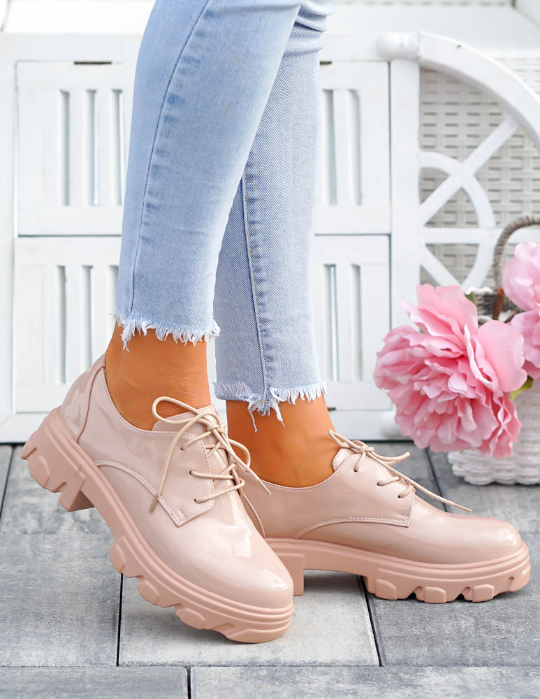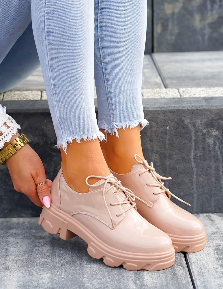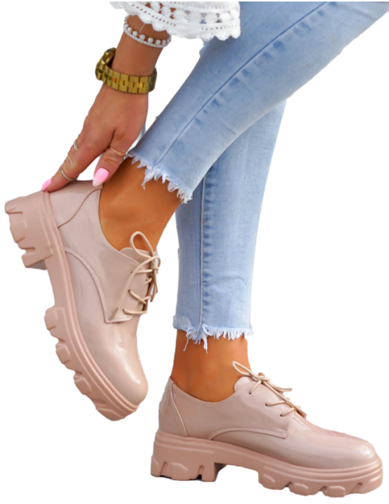 Beżowe Mokasyny Półbuty Na Grubej Podeszwie Nude