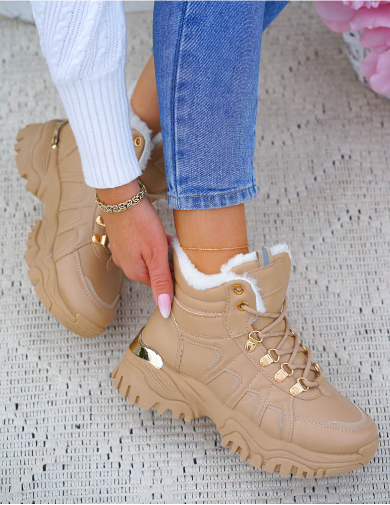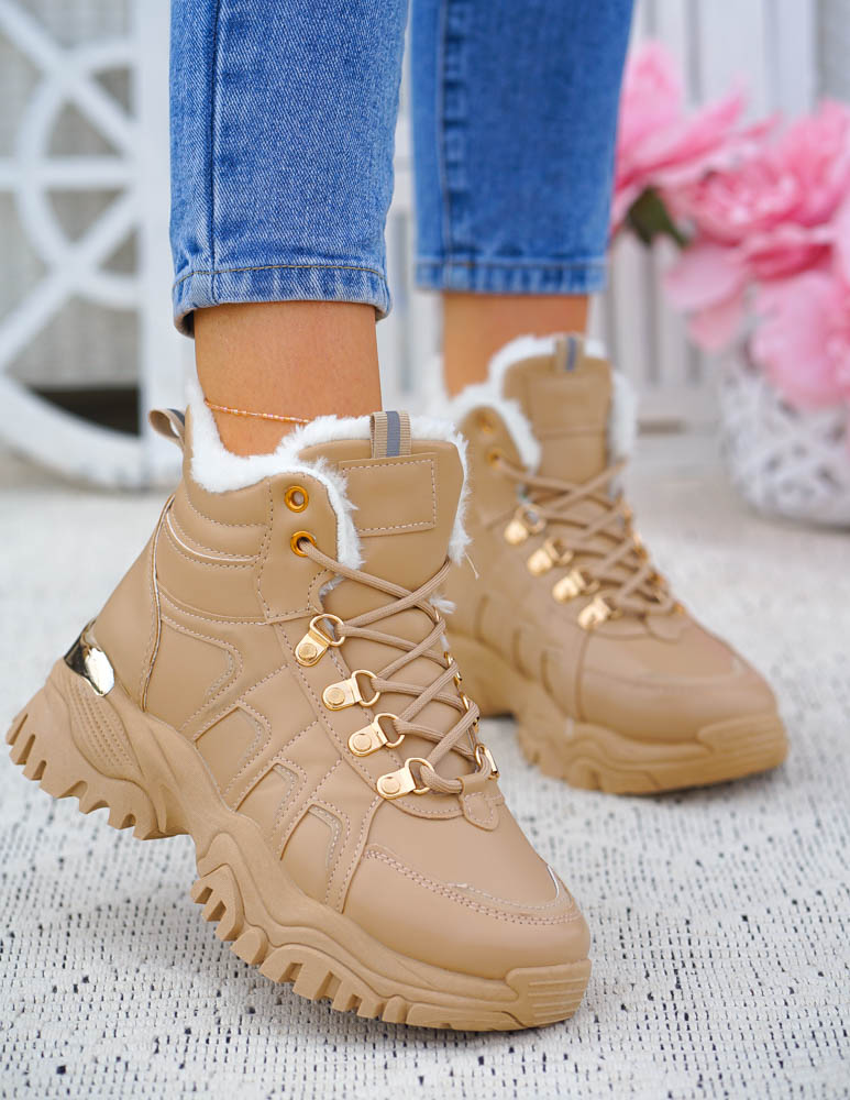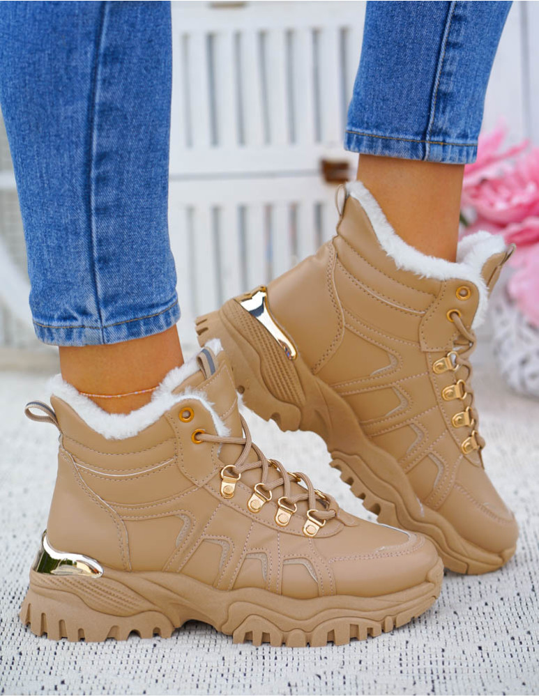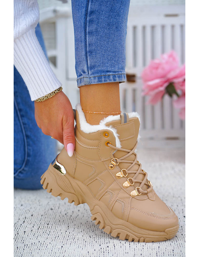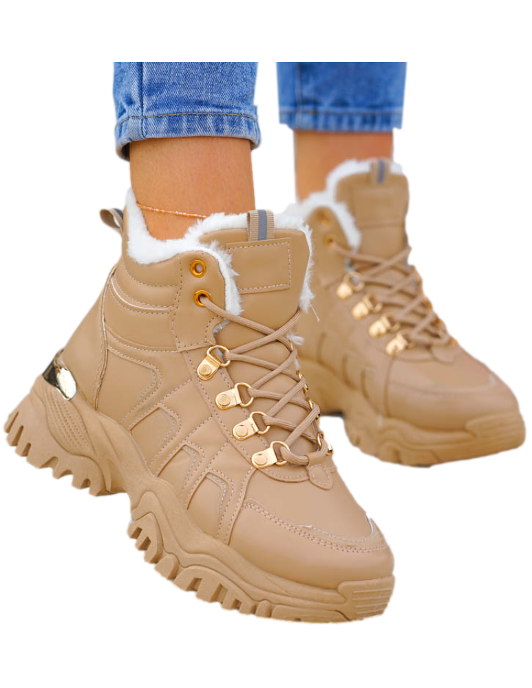 Botki Trapery Buty Sportowe Na Zimę Ocieplane Inez Beżowe