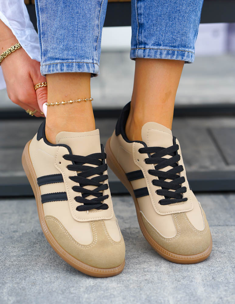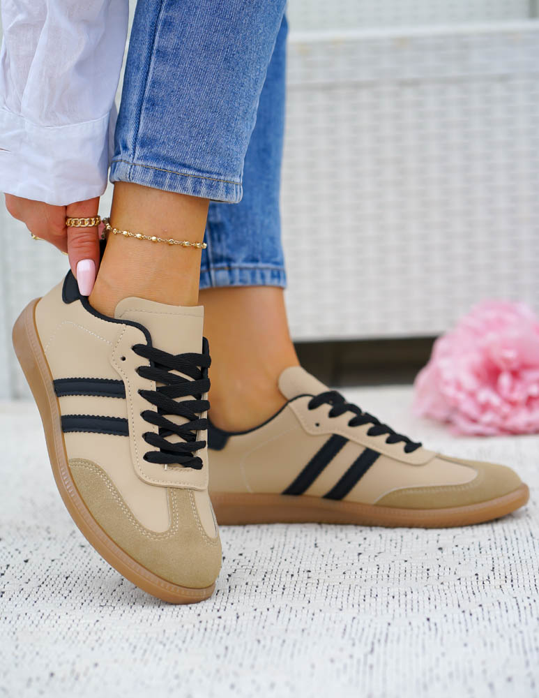 - ❤Ultra kobiece beżowe adidasy z czarnymi wstawkami