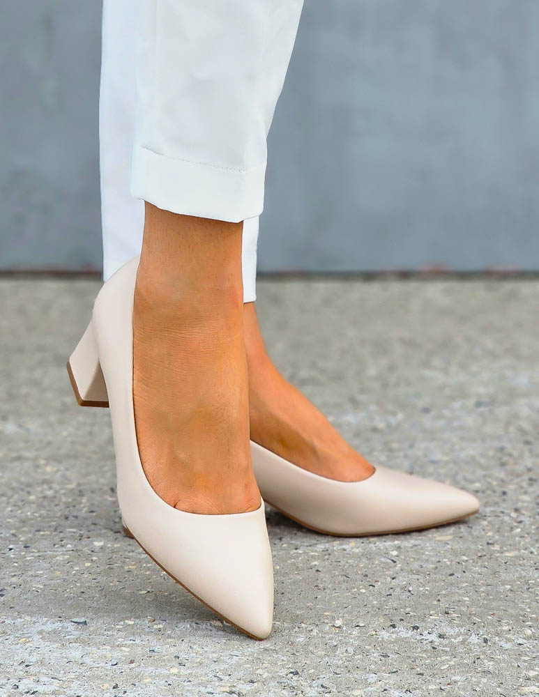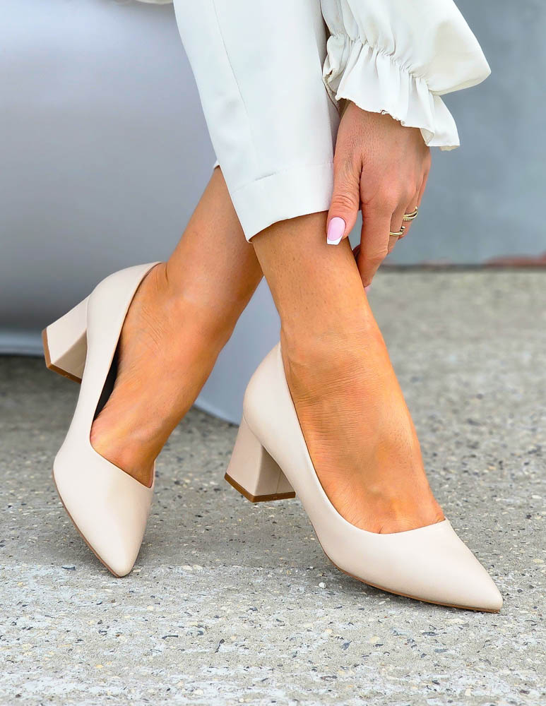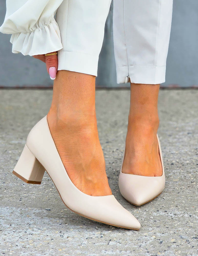 Klasyczne, beżowe czółenka w całości  ykonane z miękkiej eco skóry