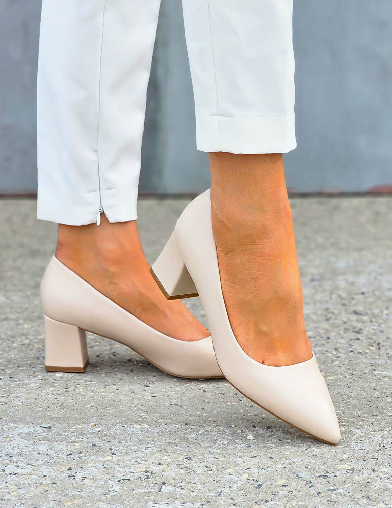 Beżowe Skórzane Czółenka Damskie Na Niskim Obcasie Visit