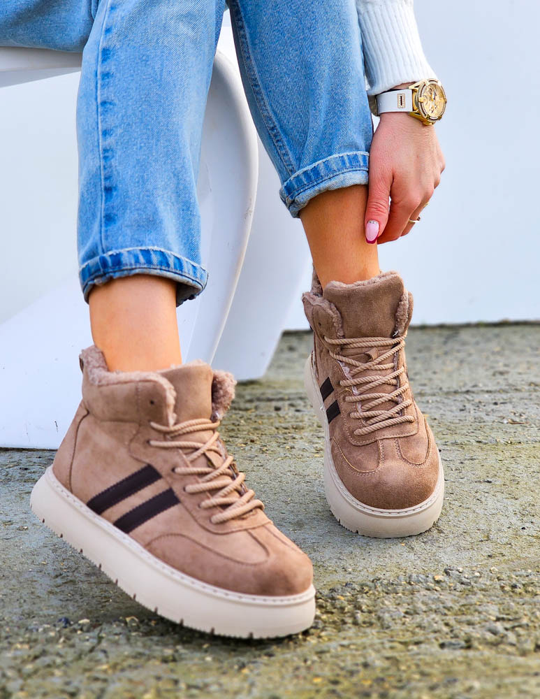 - Kod produktu: Beżowe Sportowe Zimowe Botki Damskie Ocieplane Ads