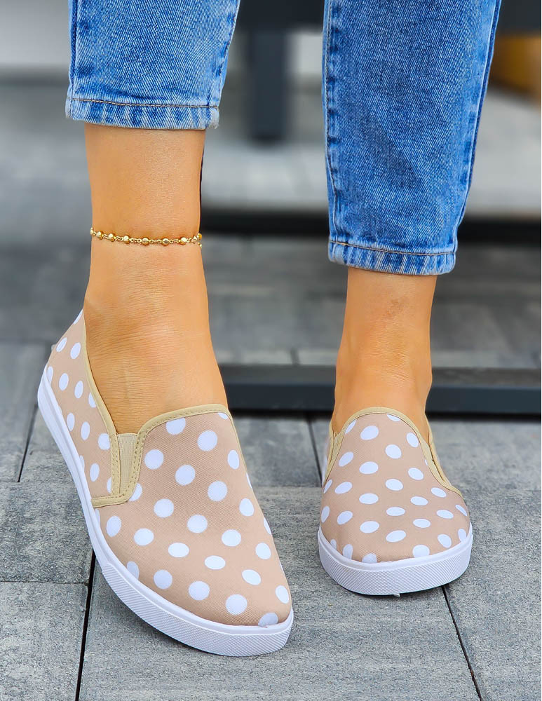 Beżowe Trampki Tenisówki w Grochy z Gumkami