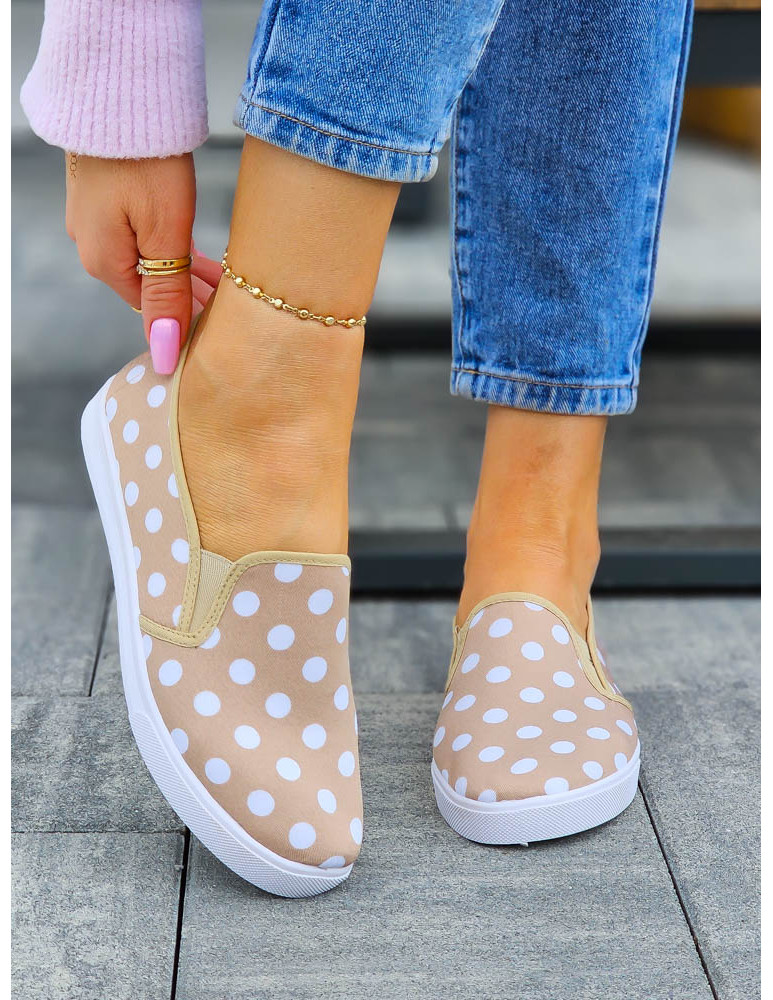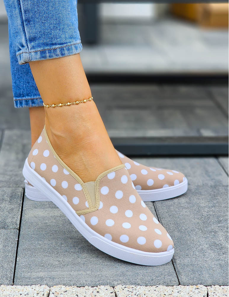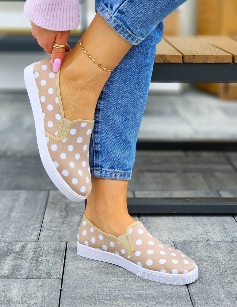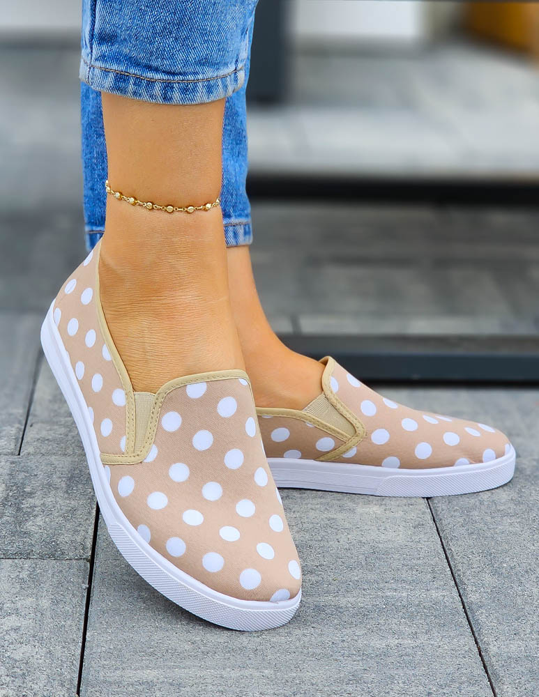 - Kod produktu: Beżowe Trampki Tenisówki w Grochy z Gumkami