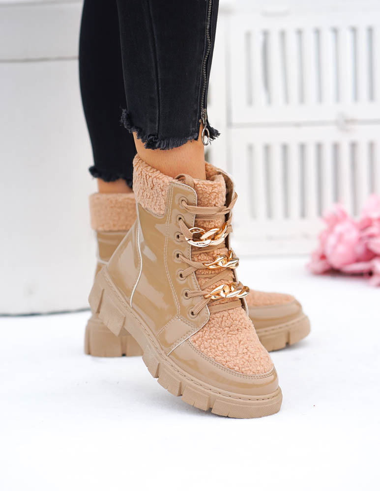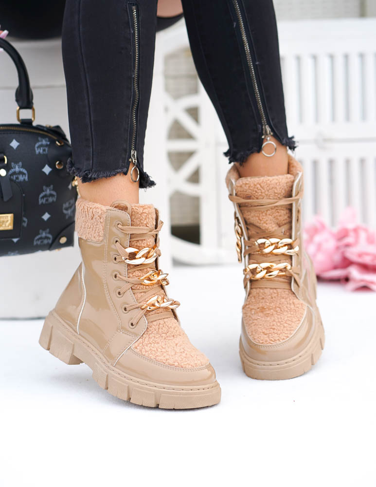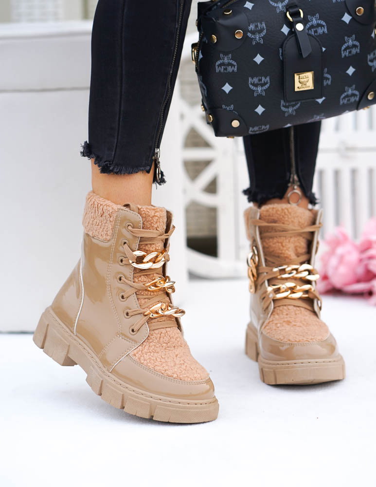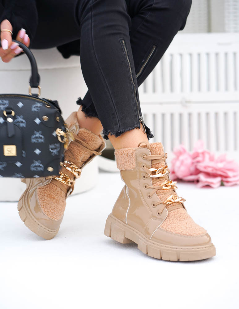 - Kod produktu: Beżowe Trapery Damskie z Kożuszkiem Modivi