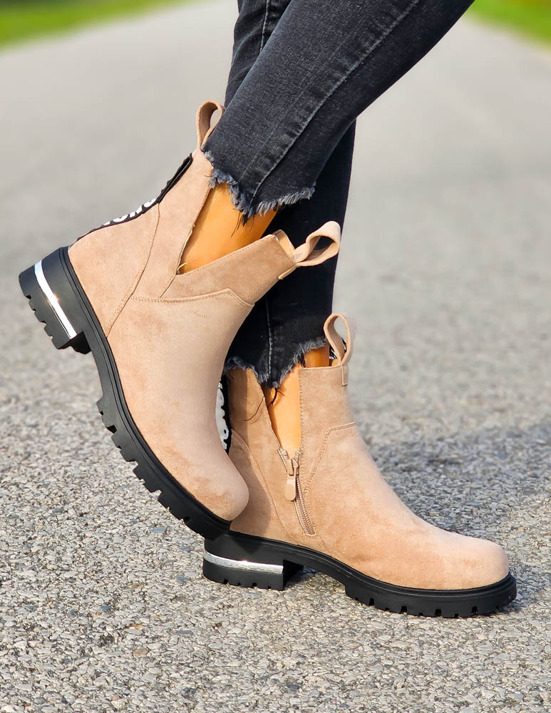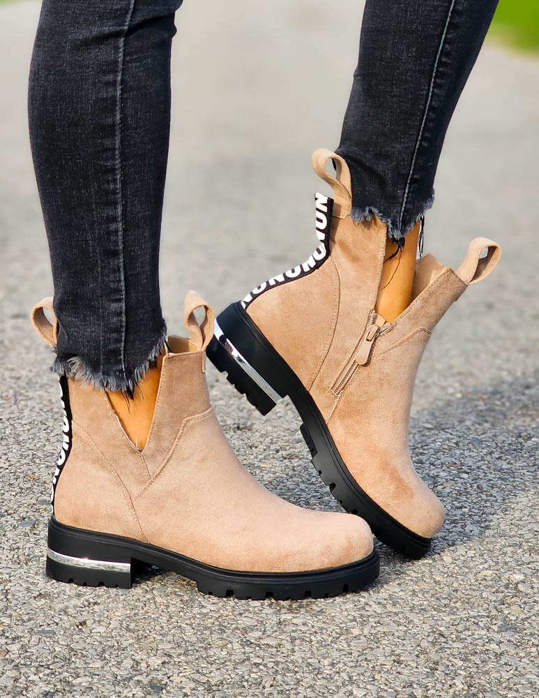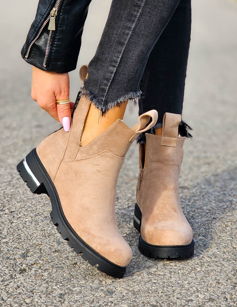 PRZEPIĘKNE ZAMSZOWE BOTKI, DOSTĘPNE W BEŻOWYM KOLORZEWYKONANE Z WYSOKIEJ JAKOŚCI MIĘKKIEJ ECO SKÓRY ..
