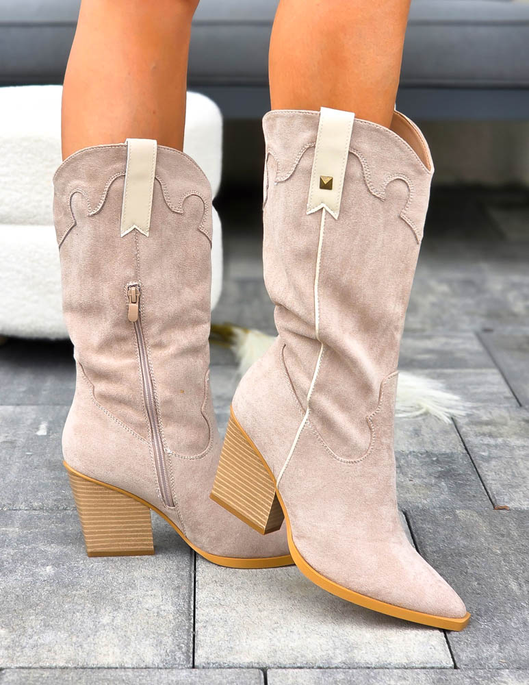 Beżowe Zamszowe Botki Kowbojki Damskie Loren