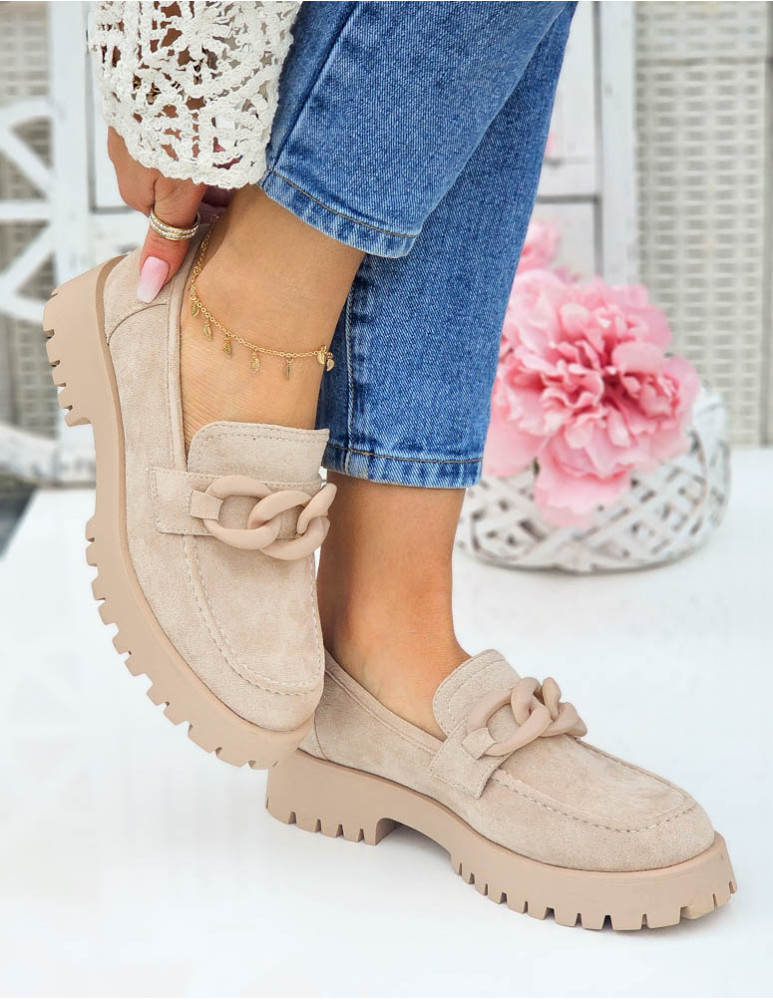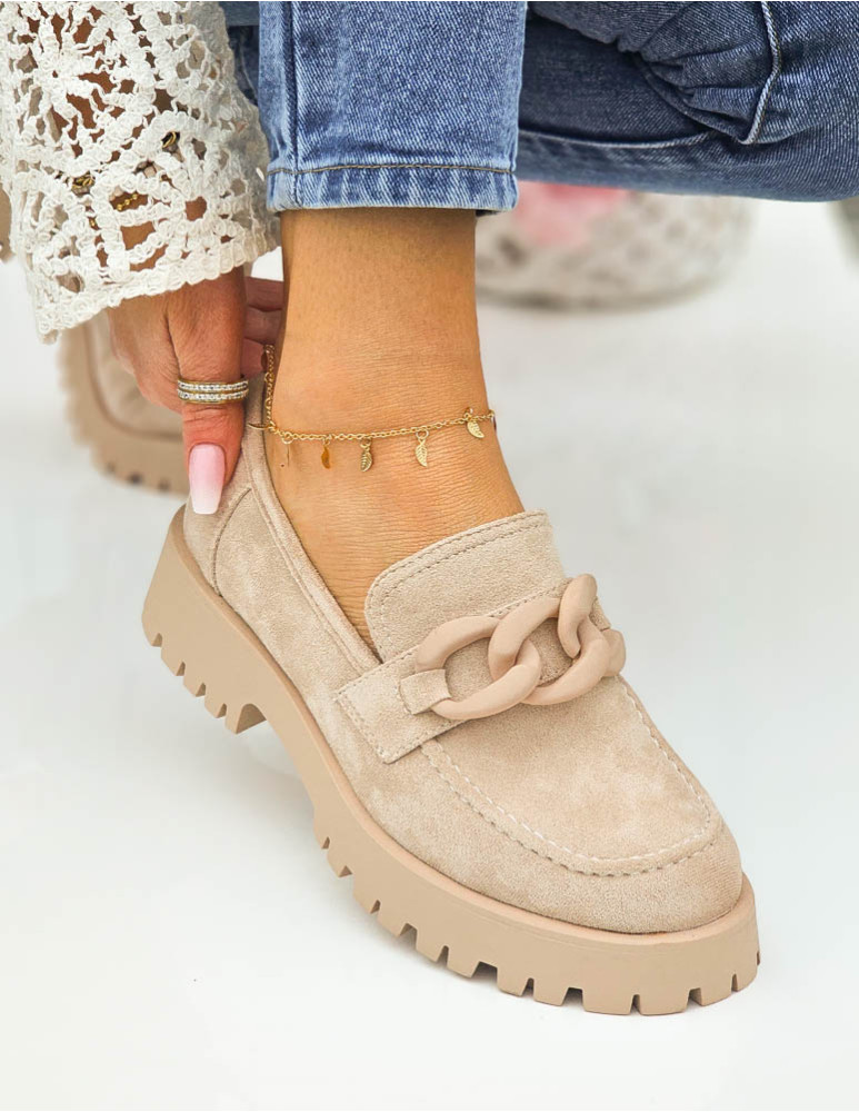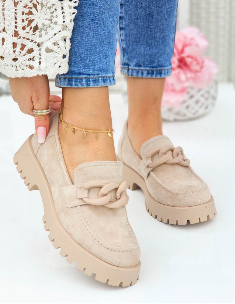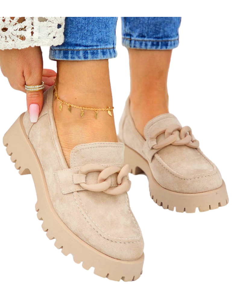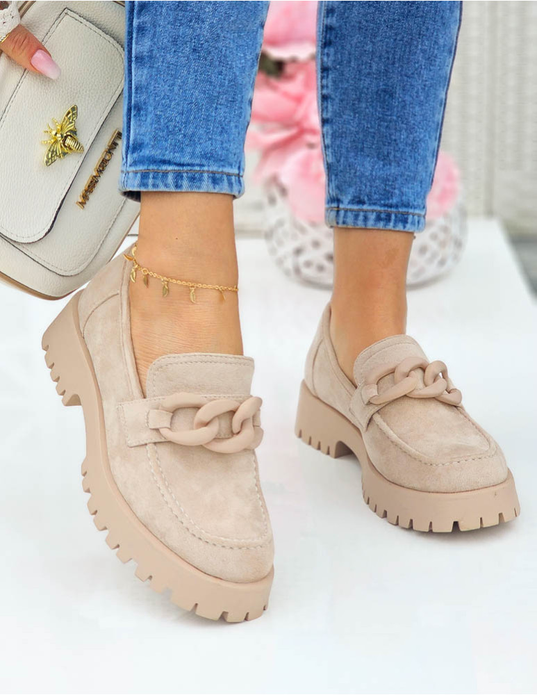 Beżowe Zamszowe Mokasyny Na Grubej Podeszwie Suzzy