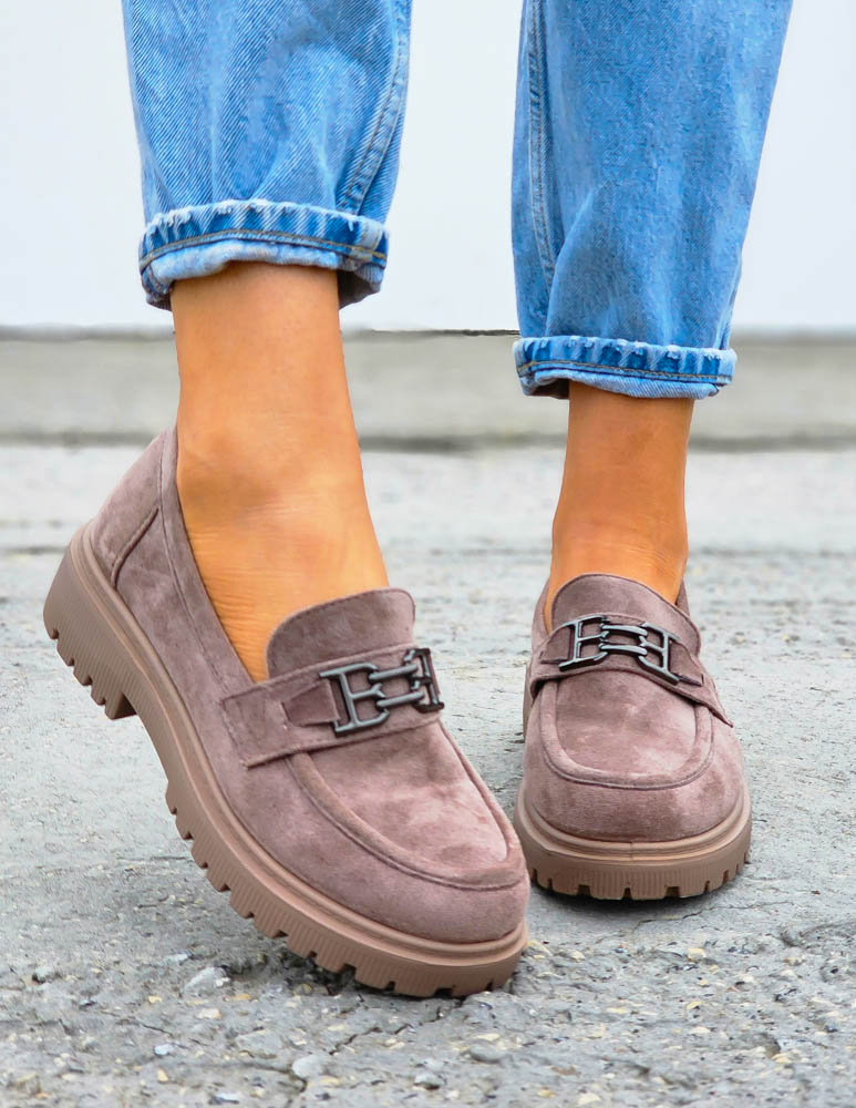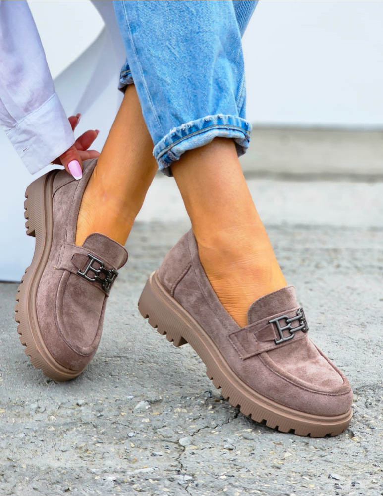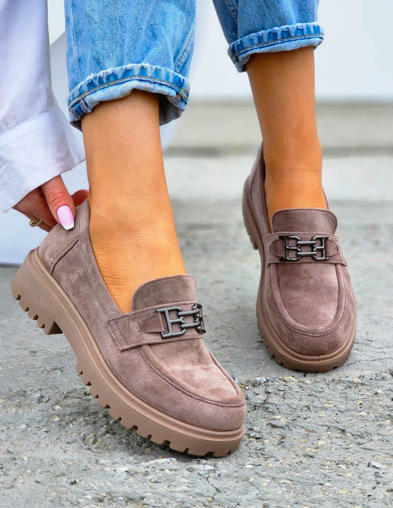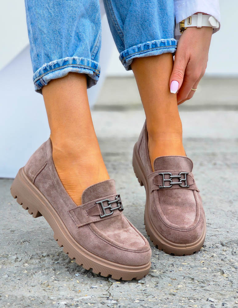 Beżowe Zamszowe Mokasyny Na Grubej Podeszwie Suzzy