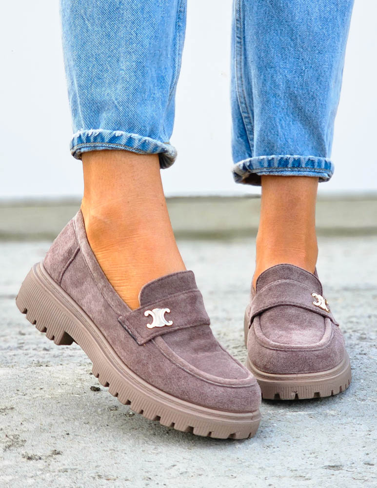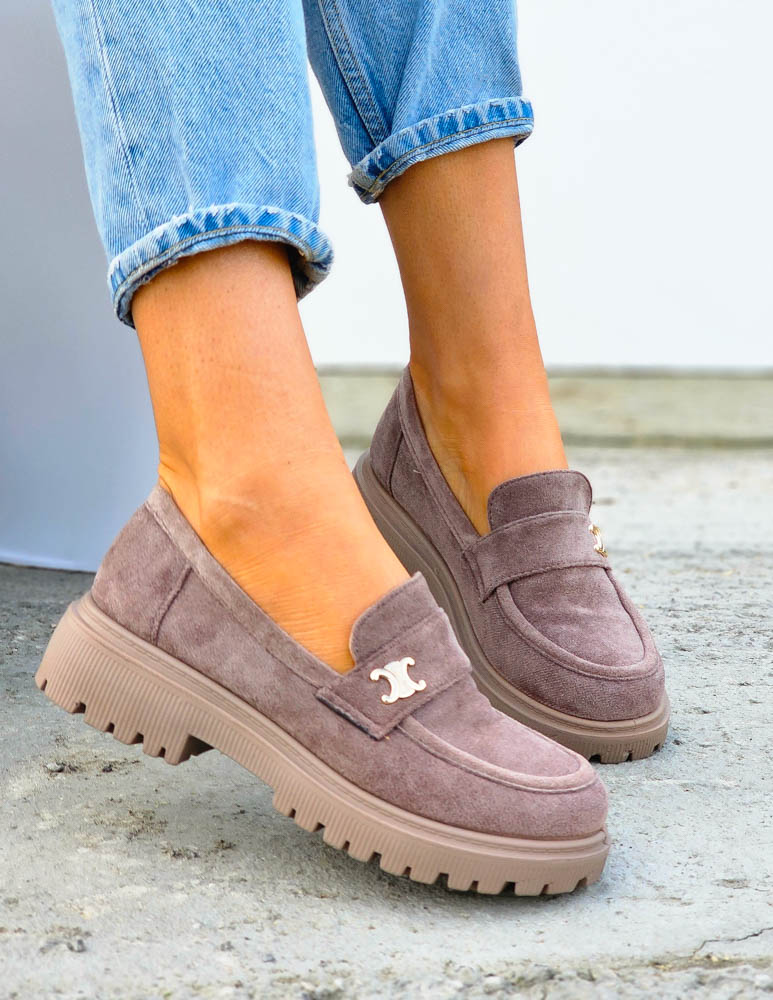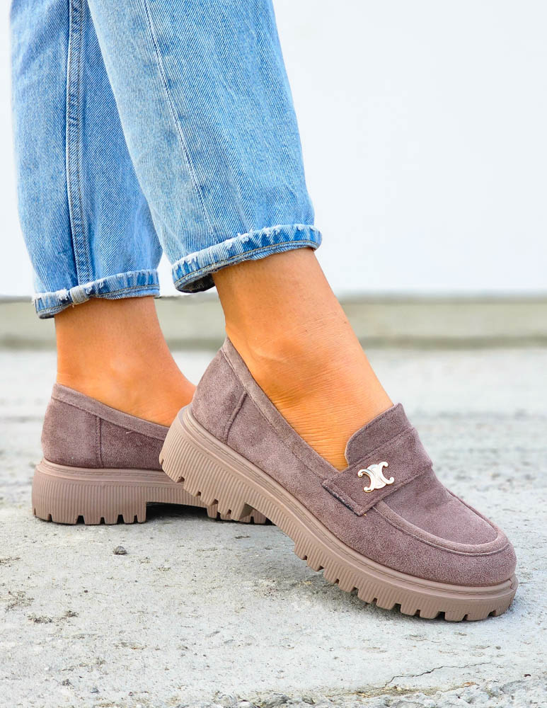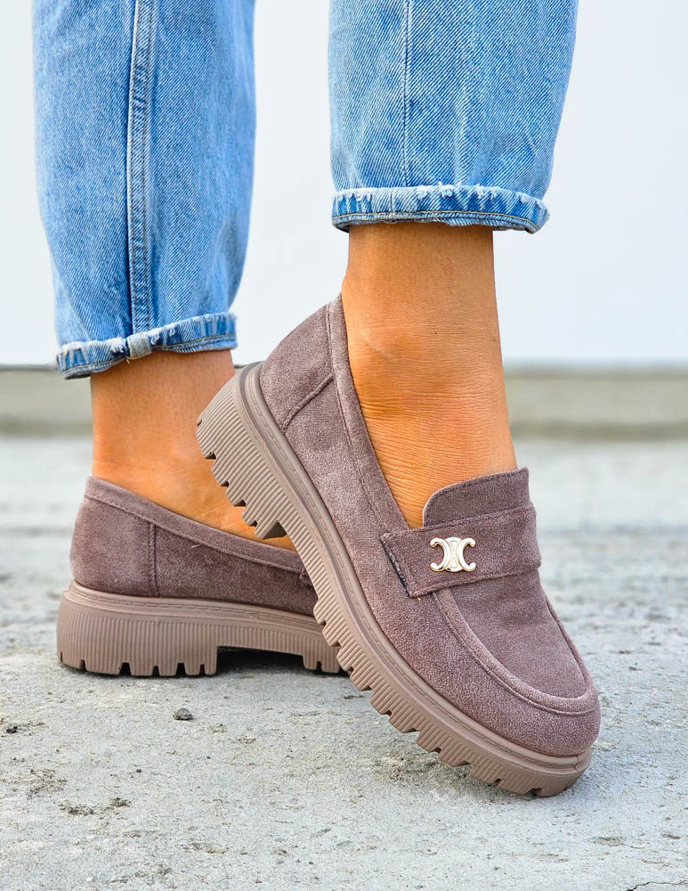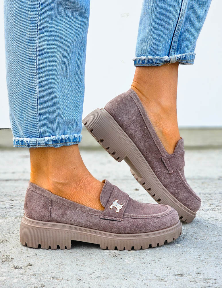 Beżowe Zamszowe Mokasyny Na Grubej Podeszwie Suzzy