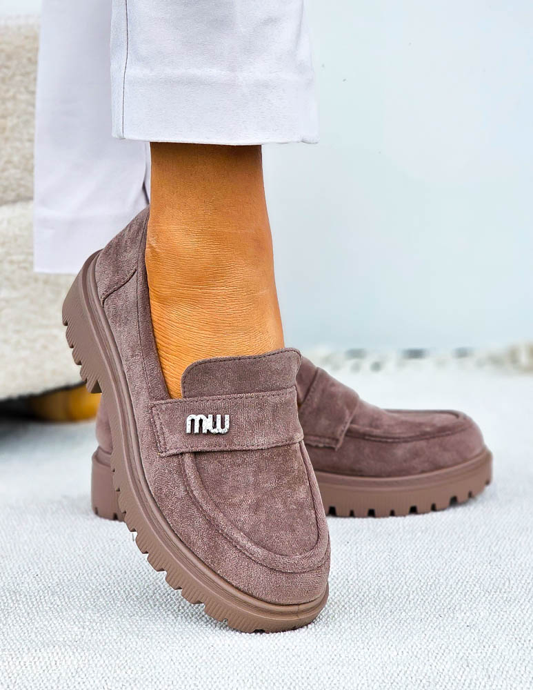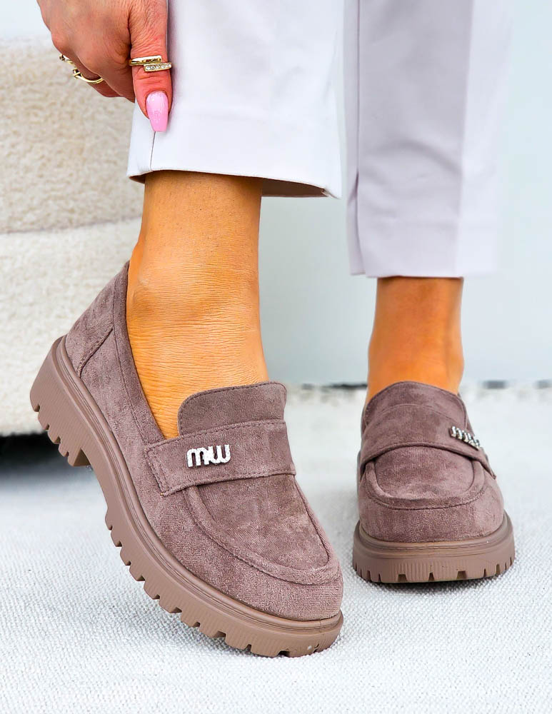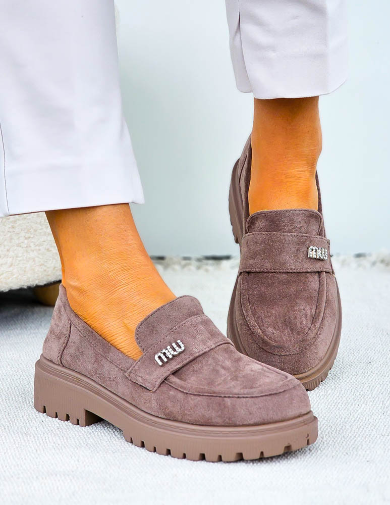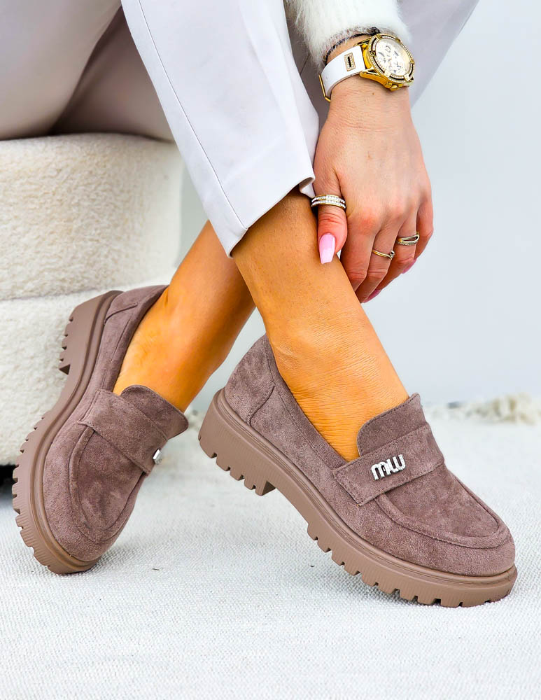Beżowe Zamszowe Mokasyny Na Grubej Podeszwie Suzzy
