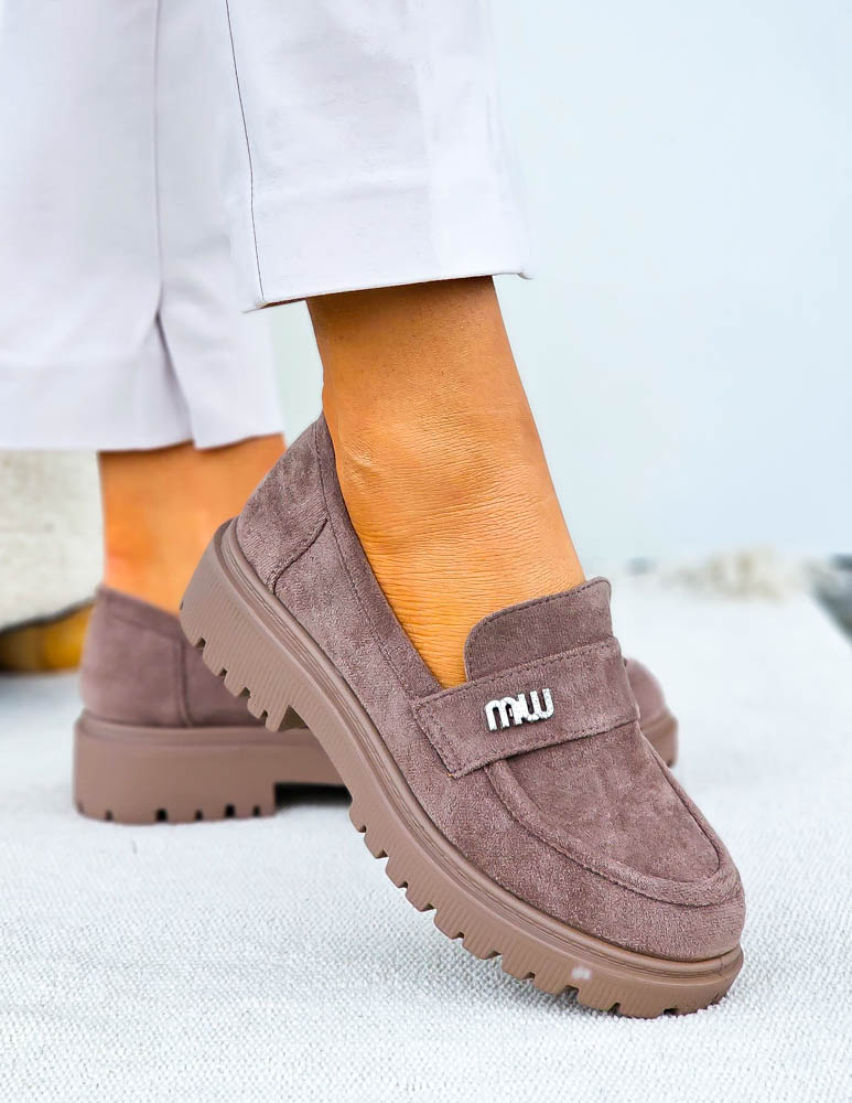 Beżowe Zamszowe Mokasyny Na Platformie Niuniu
