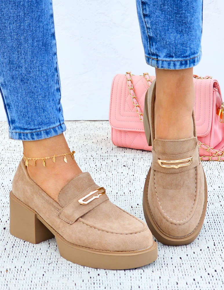 Beżowe Zamszowe Mokasyny Na Grubej Podeszwie Suzzy