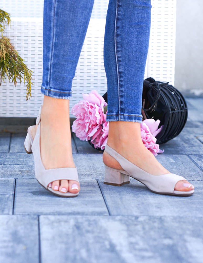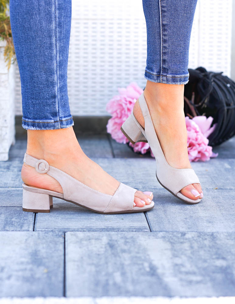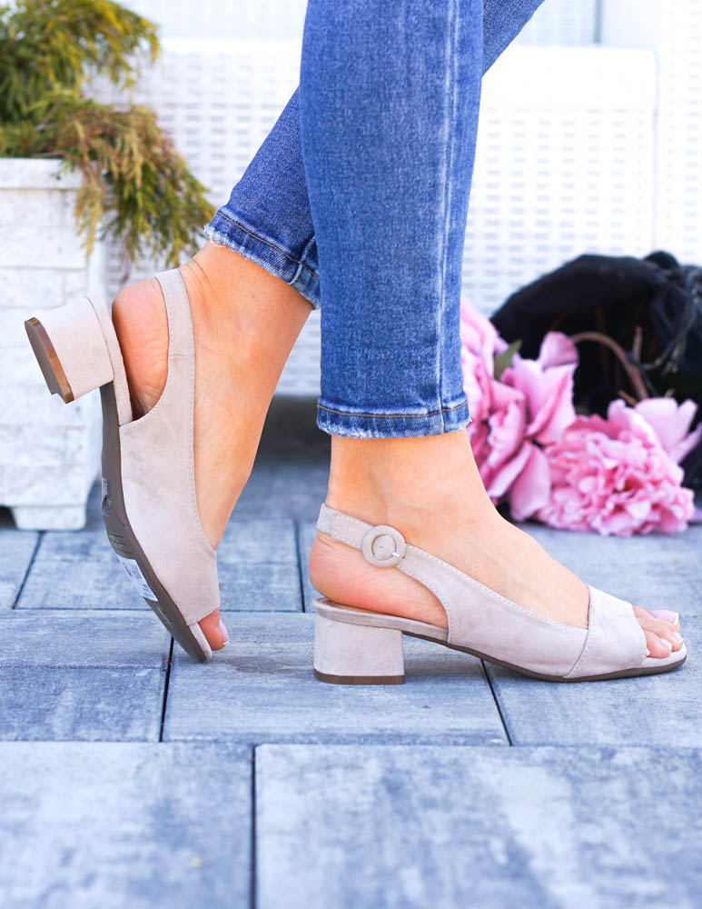 - Kod produktu: Beżowe Zamszowe Sandały Damskie Na Niskim Obcasie