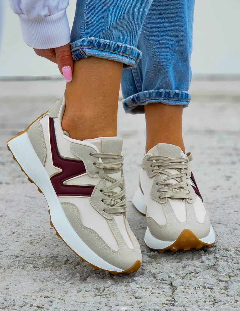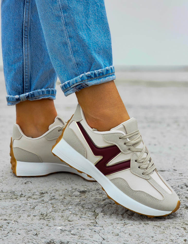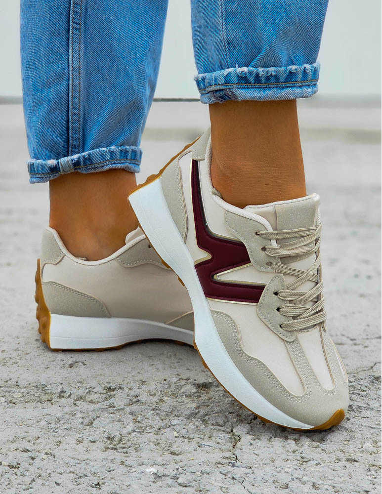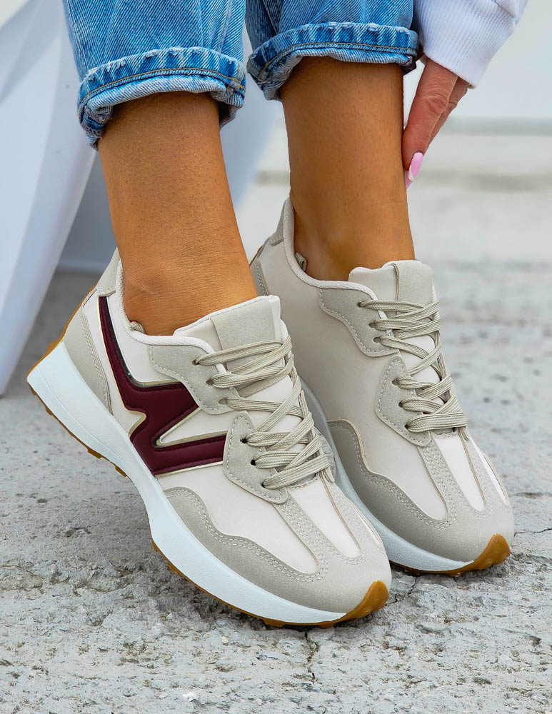 Beżowo-Bordowe Sneakersy Buty Sportowe New Bancy