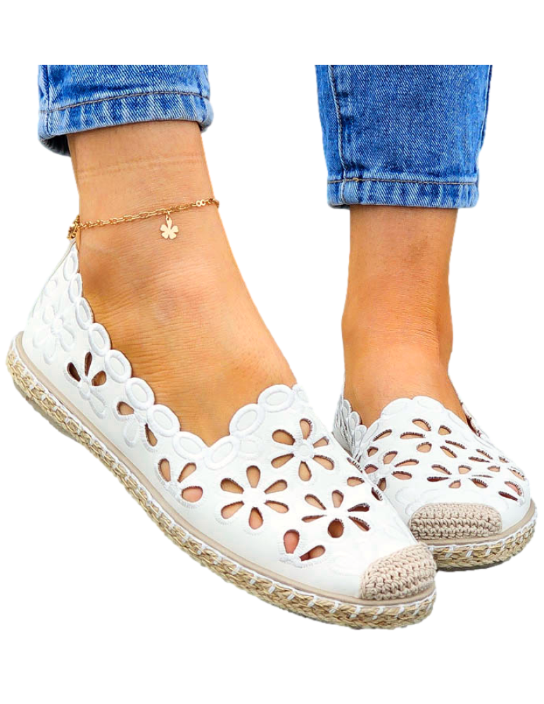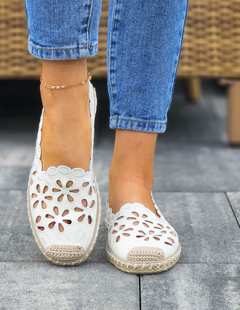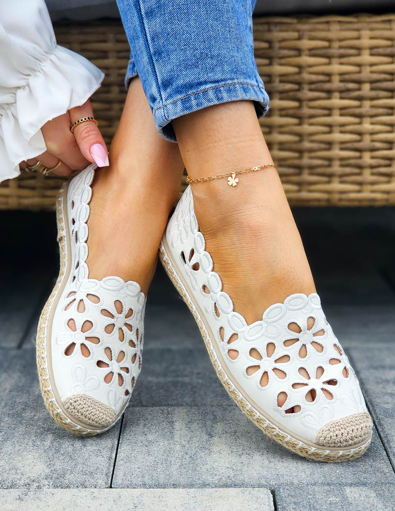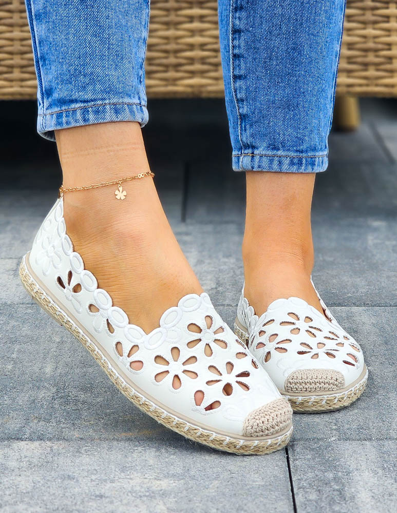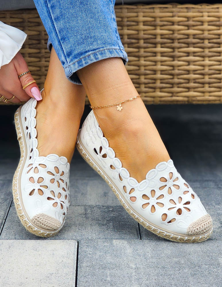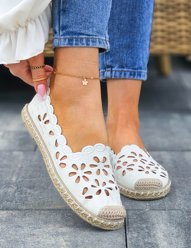 Białe Ażurowe Espadryle Baleriny Na Lato Flowers