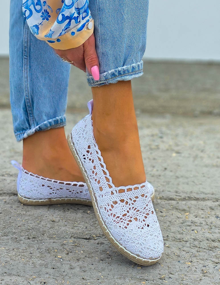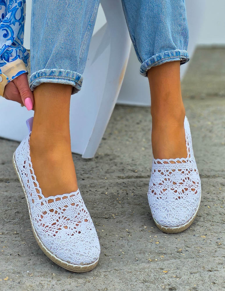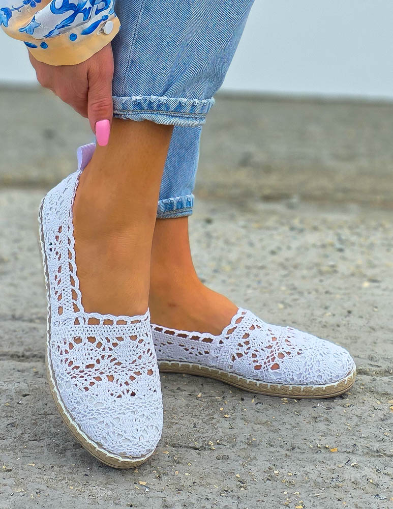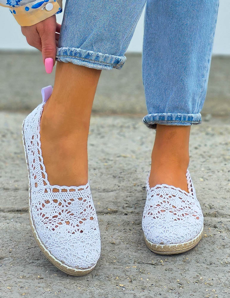 - Kod produktu: Białe Ażurowe Koronkowe Balerinki Giulia