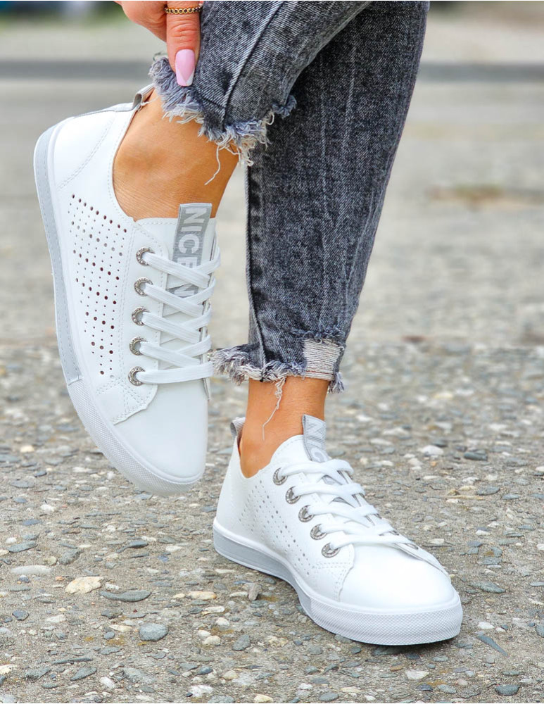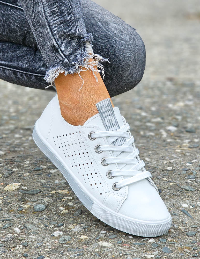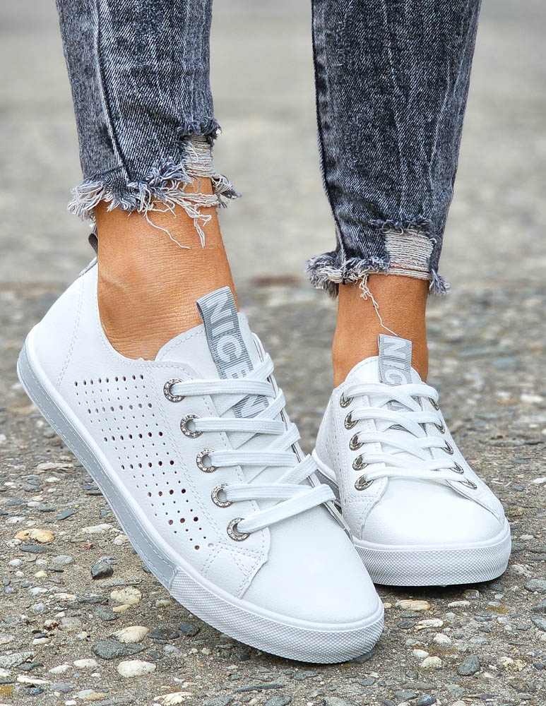 Białe Ażurowe Trampki Buty Sportowe Ze Skóry Basic Grey