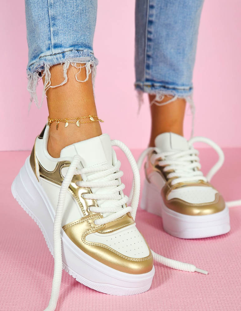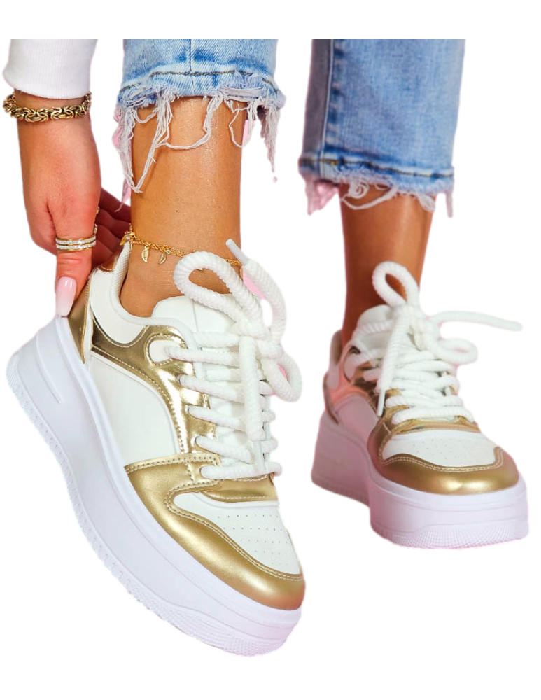 Biało-Złote Sneakersy Buty Sportowe Damskie Lus Vittron