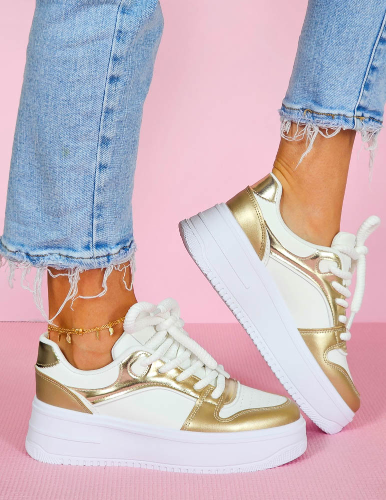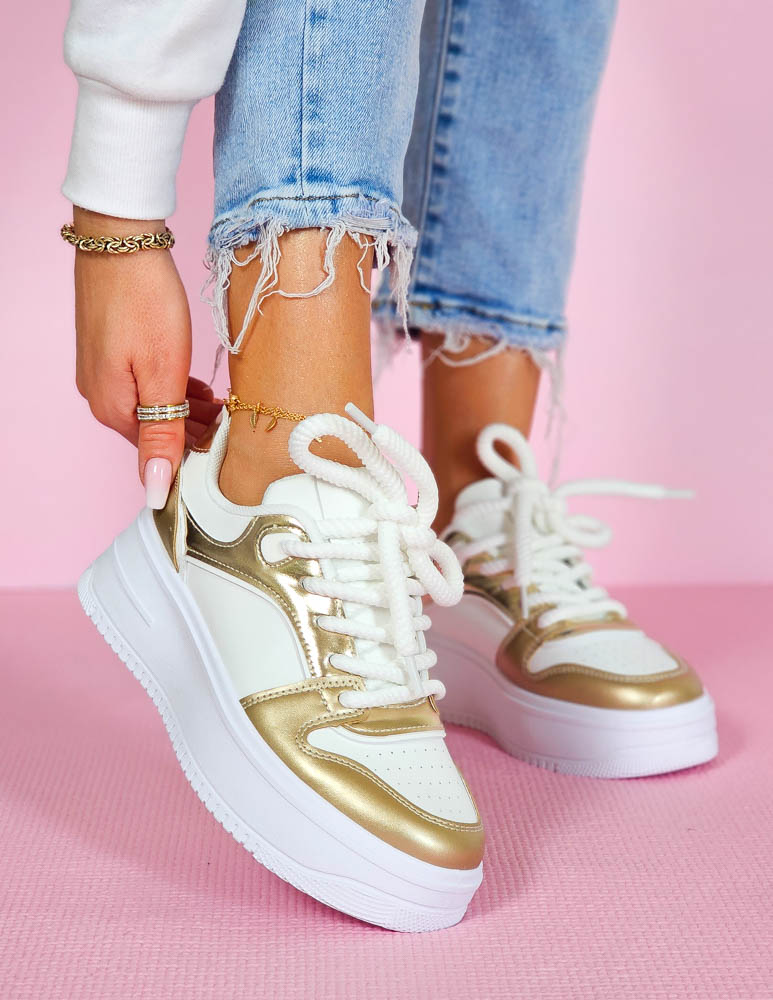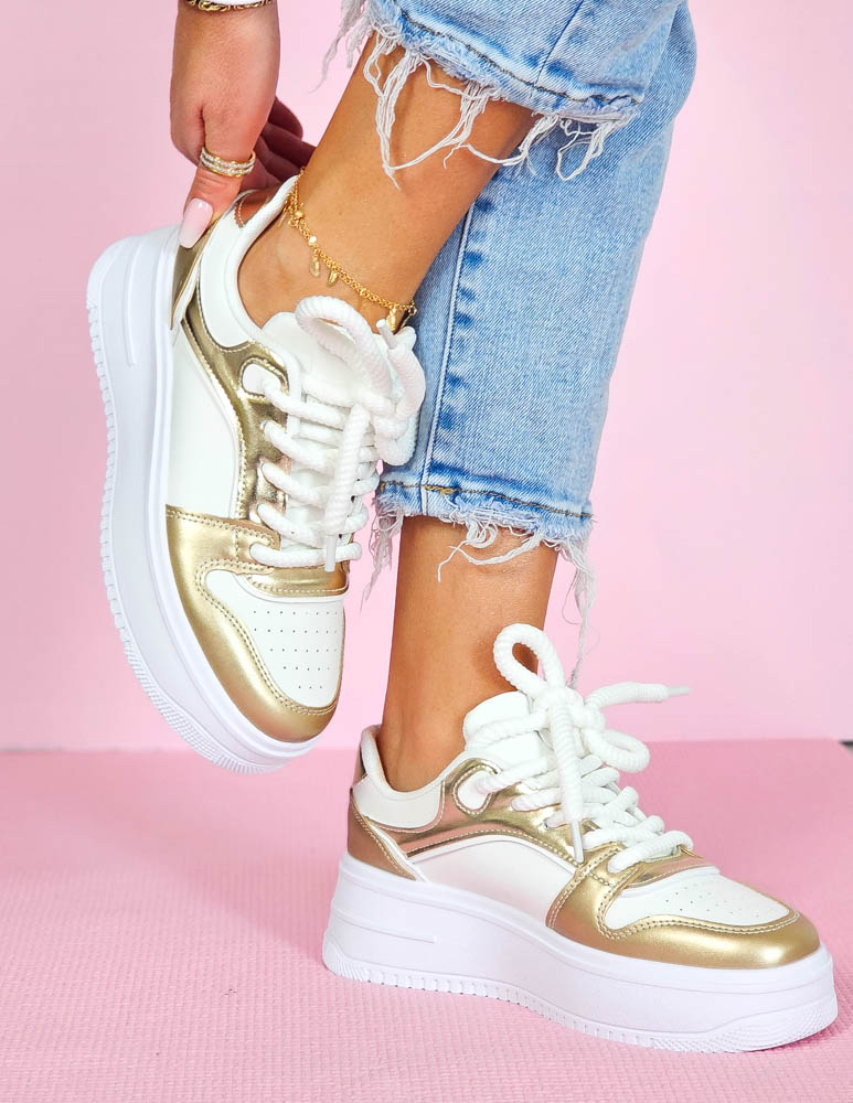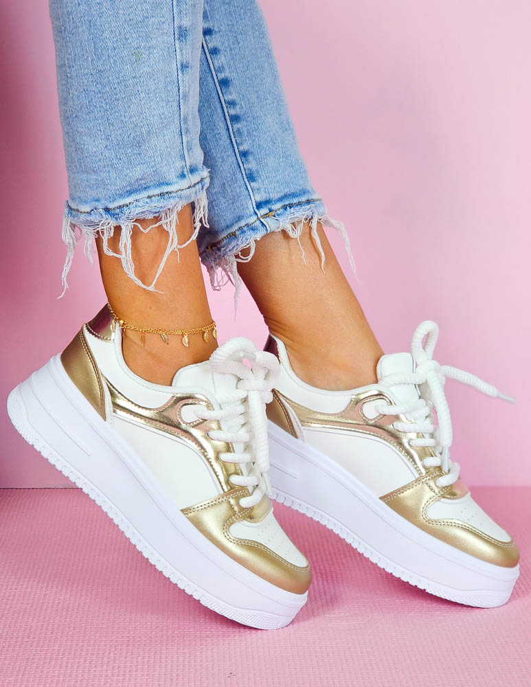 ❤  Biało-złote trampki ze skóry