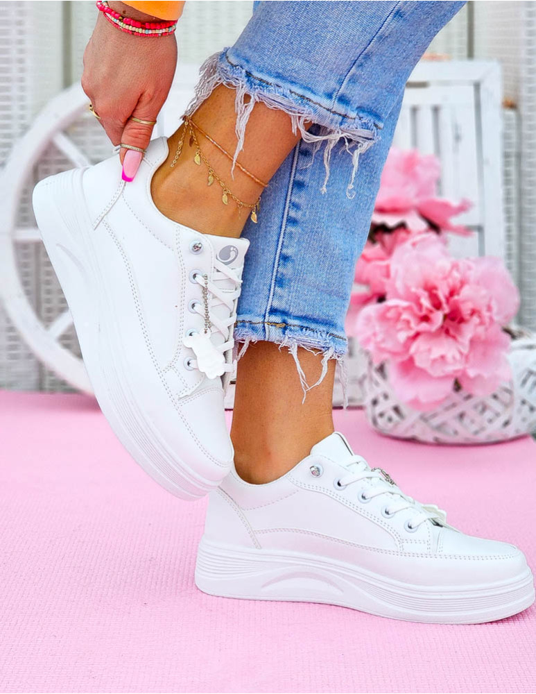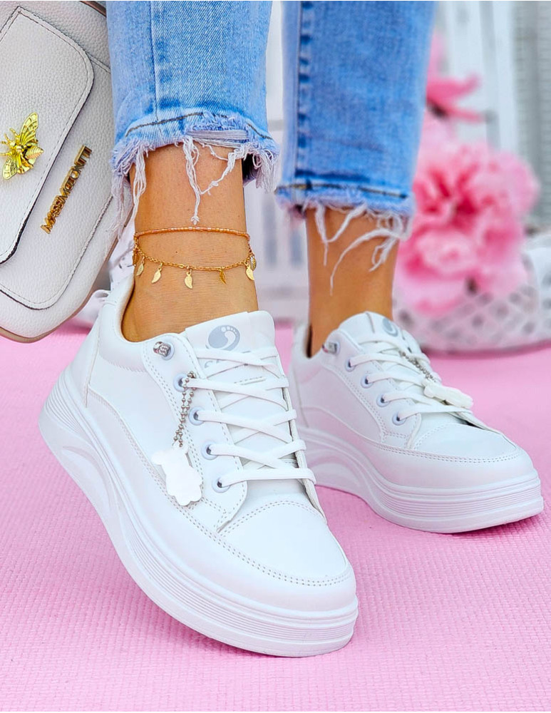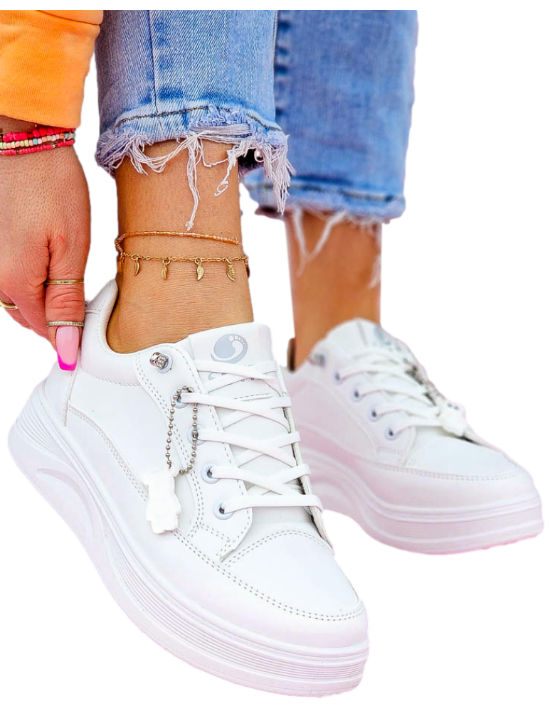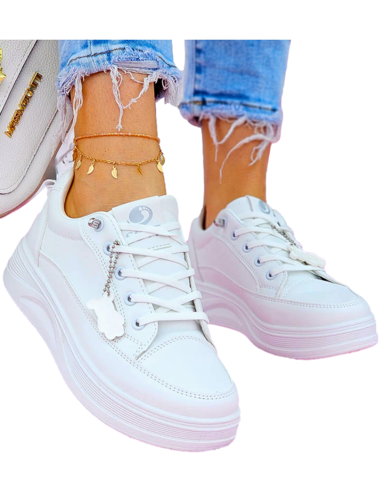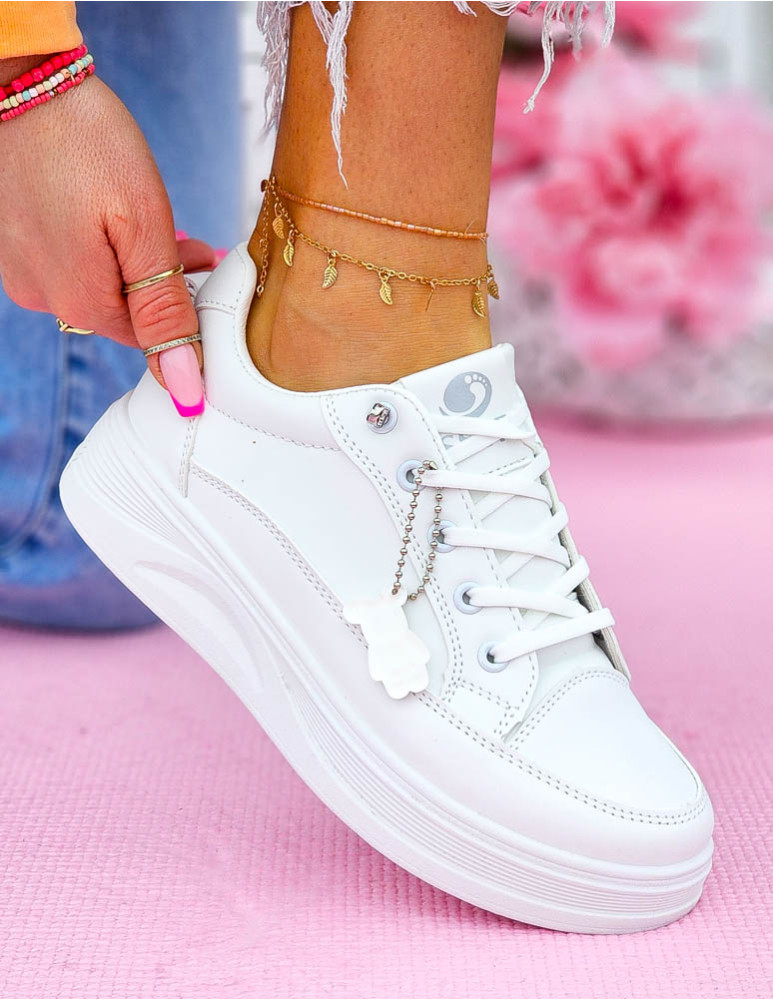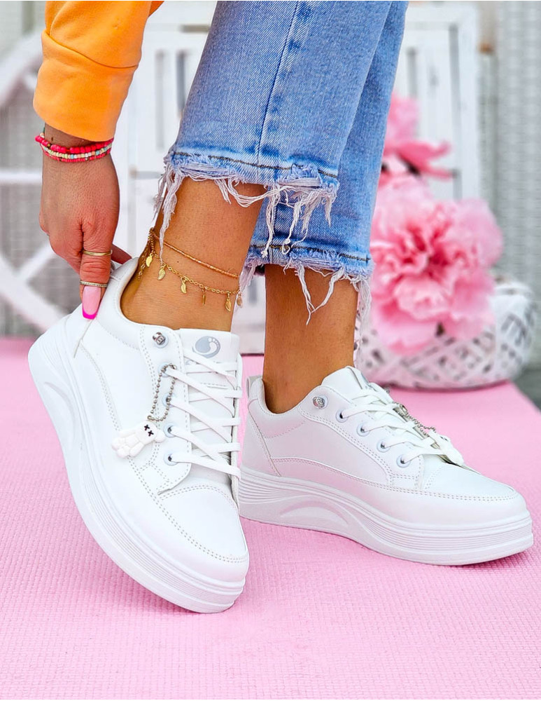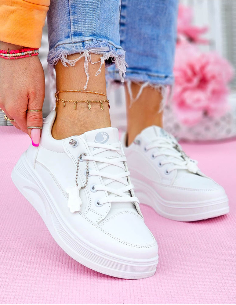 - ❤ Białe trampki ze skóry z odpinananą zawieszką misiem