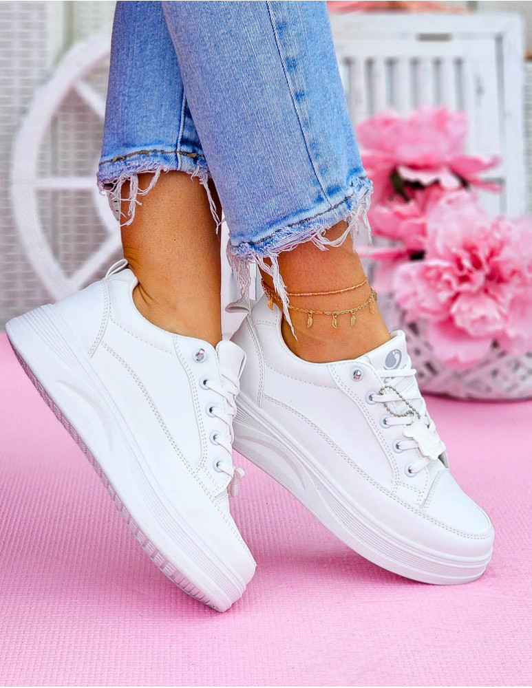 Białe Buty Sportowe Trampki Ze Skóry Na Platformie Bear