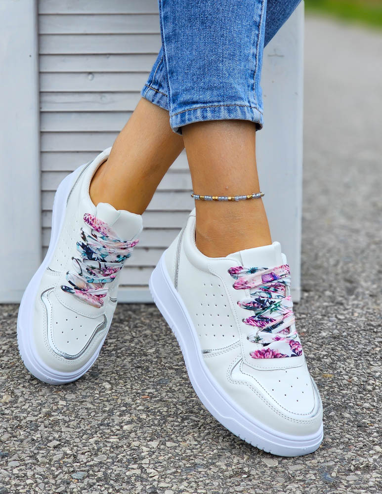- Kod produktu: Białe Buty Sportowe Ze Skóry Flower
