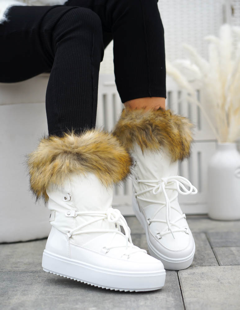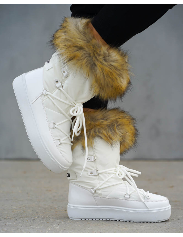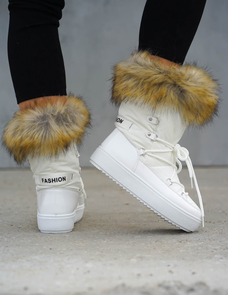 - Kod produktu: Białe Buty Zimowe Botki Śniegowce Z Futerkiem Wodoodporne