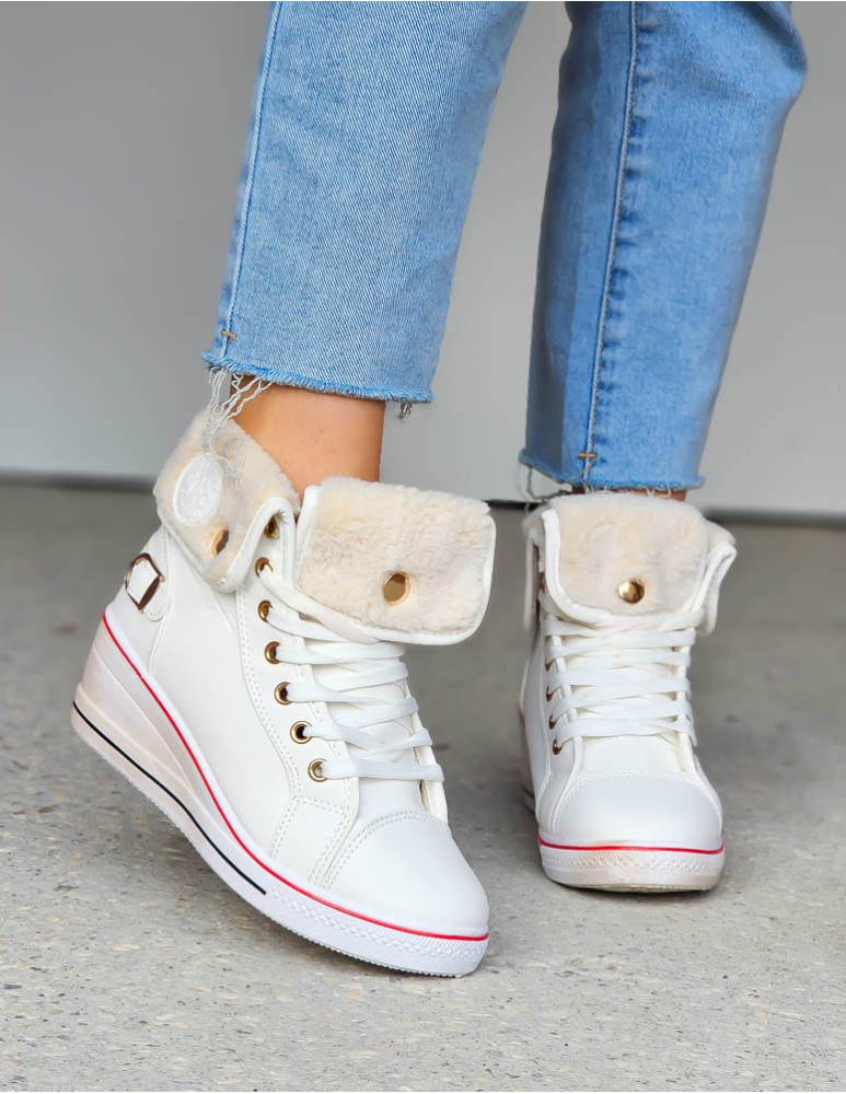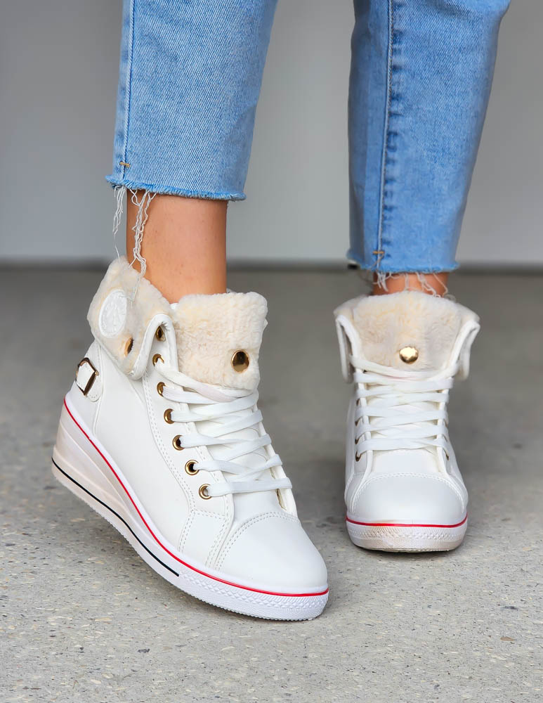 Białe Sportowe Buty Zimowe Na Koturnie z Kożuszkiem