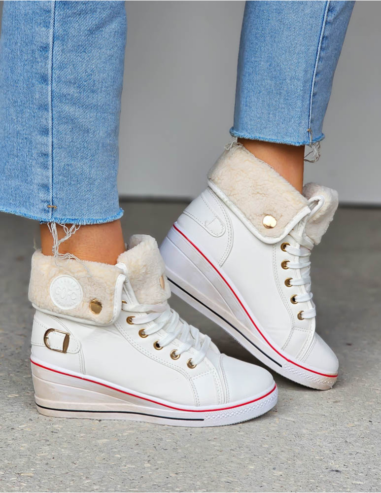 - Kod produktu: Białe Sportowe Buty Zimowe Na Koturnie z Kożuszkiem
