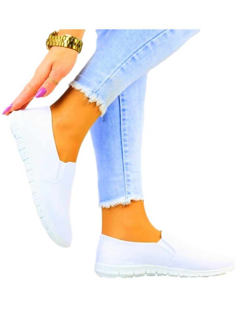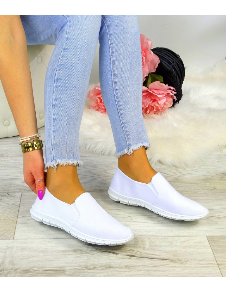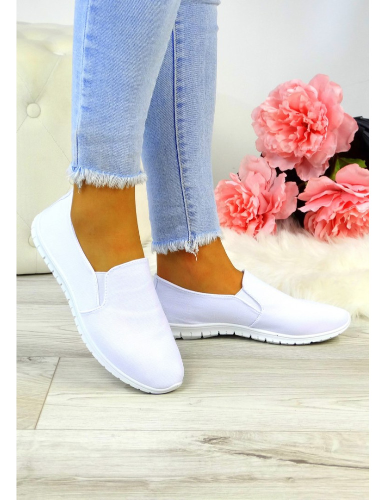 Białe Elastyczne Tenisówki Buty Damskie z Lycry
