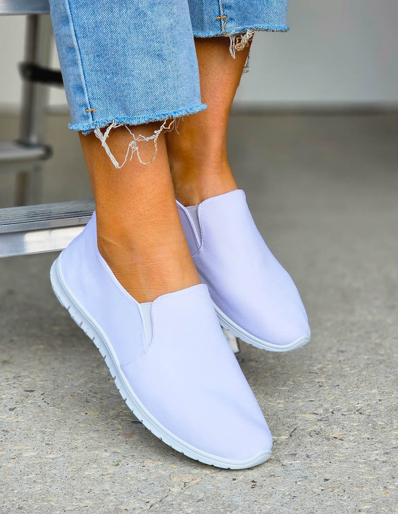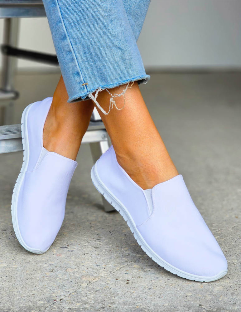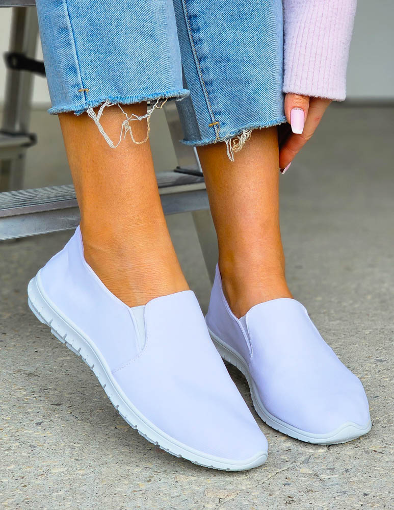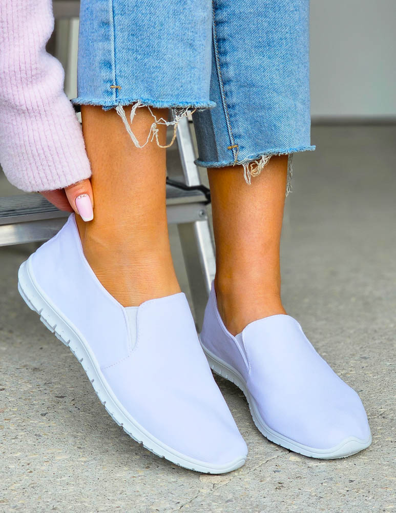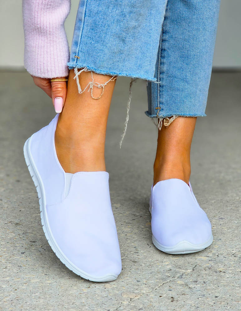 Białe Elastyczne Trampki Tenisówki z Lycry z Gumką My