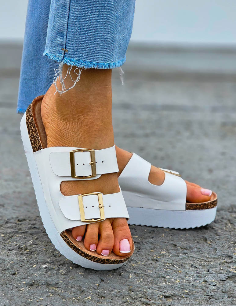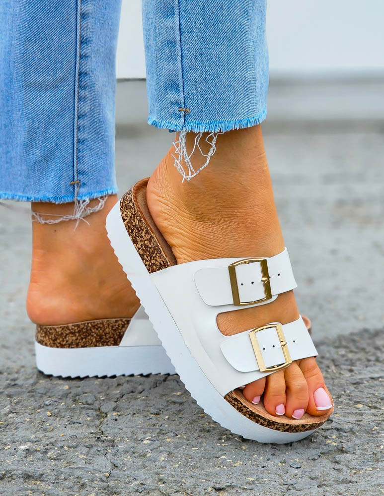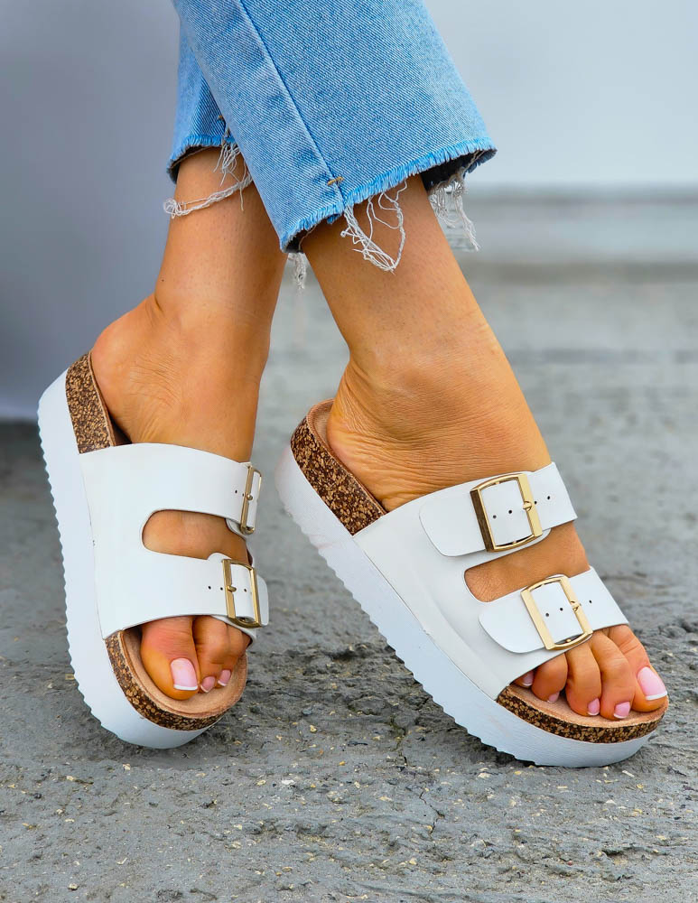 ❤Białe klapki na korkowej podeszwie