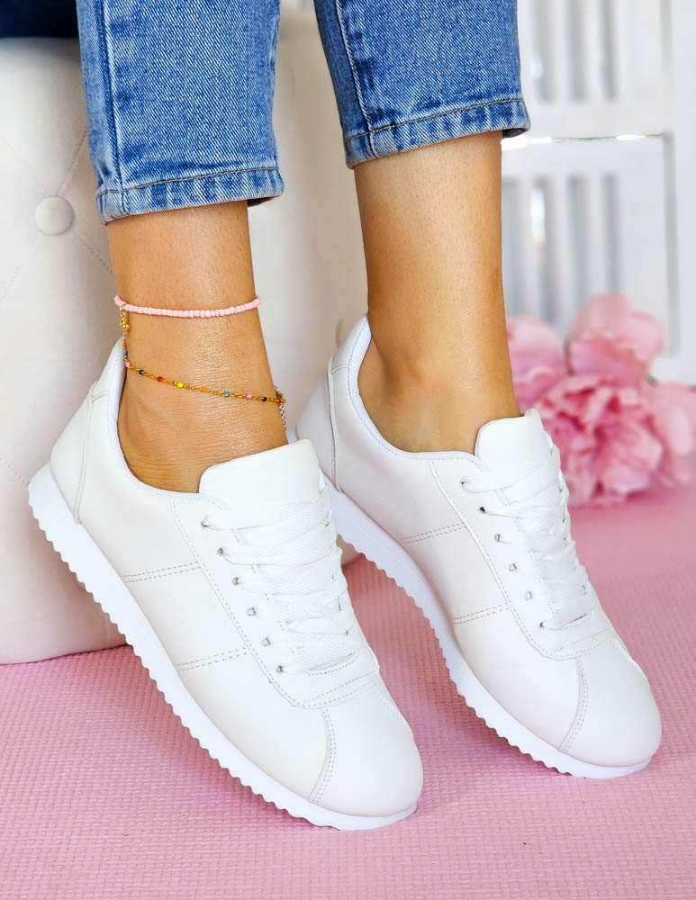 Biale klasyczne adidasy damskie , w całości wykonane z oddychającej eco skóry