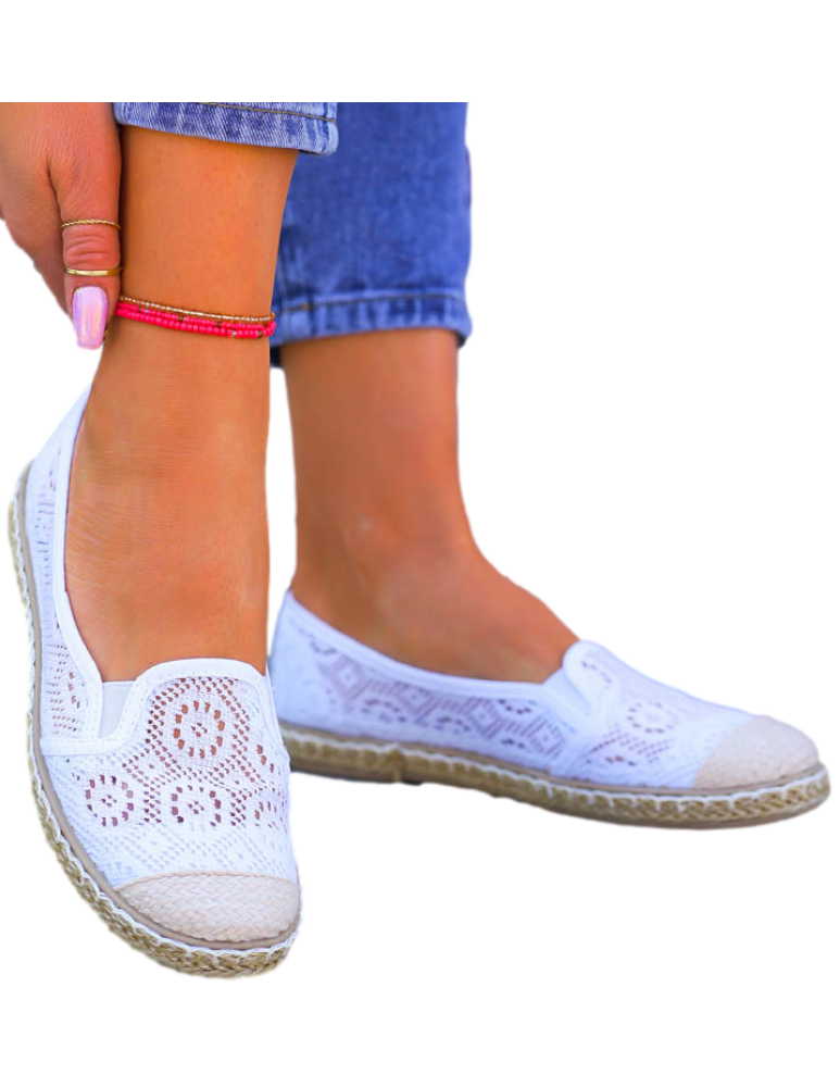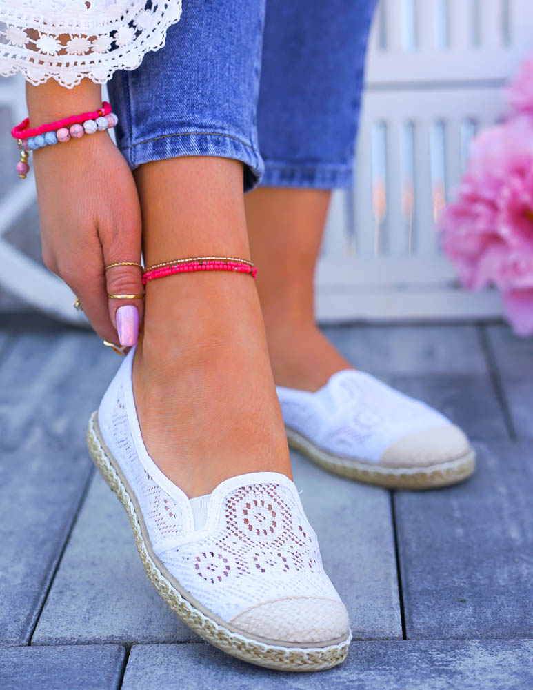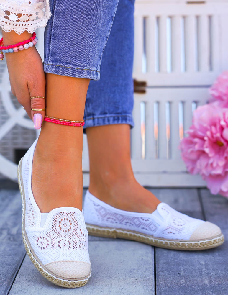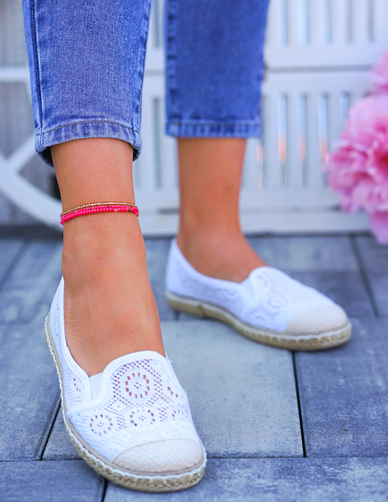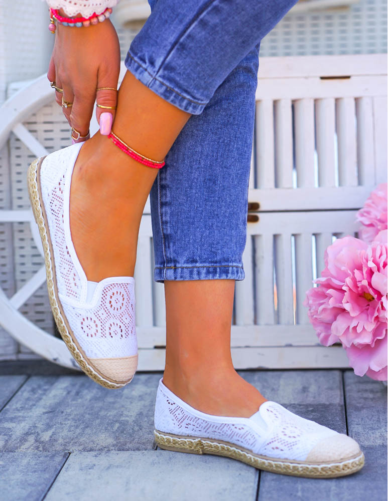 Białe Koronkowe Espadryle Baleriny Tenisówki Mirell